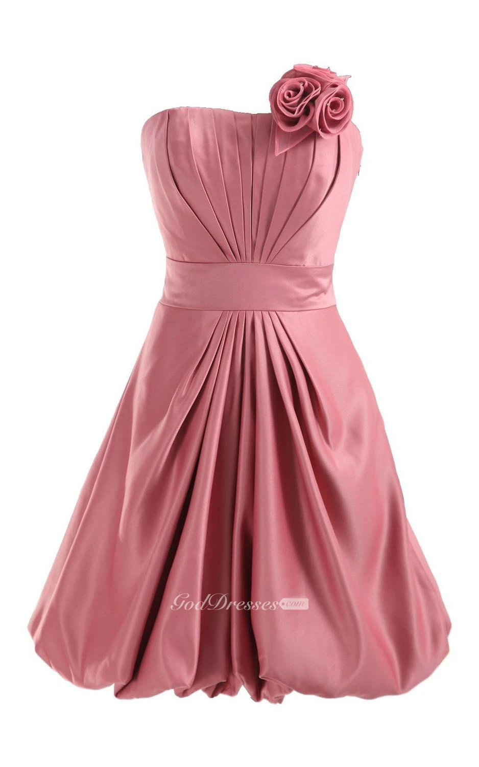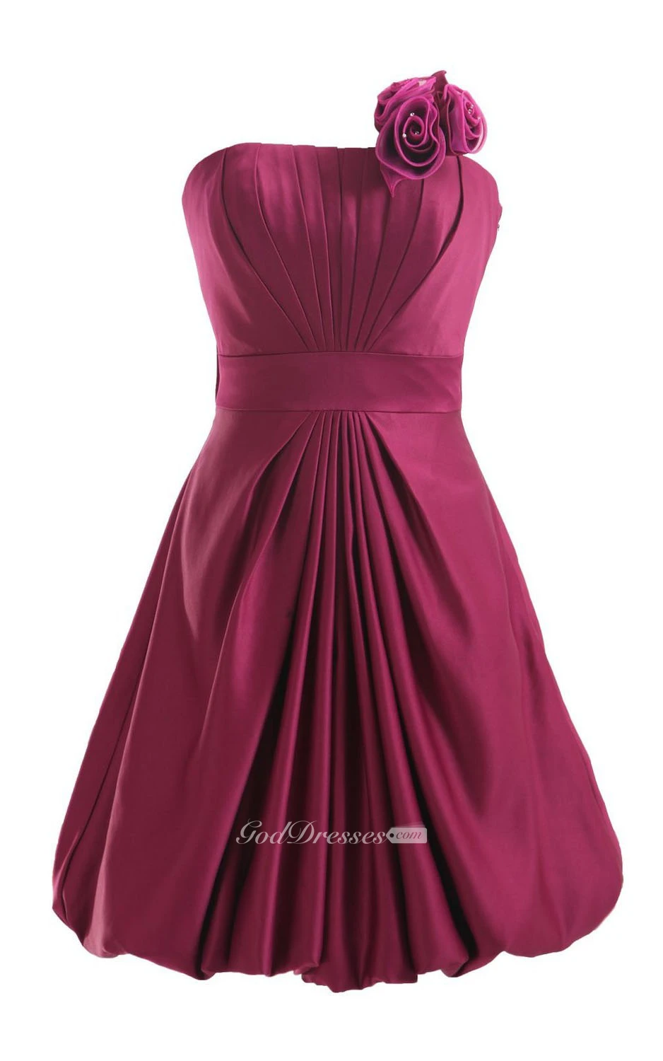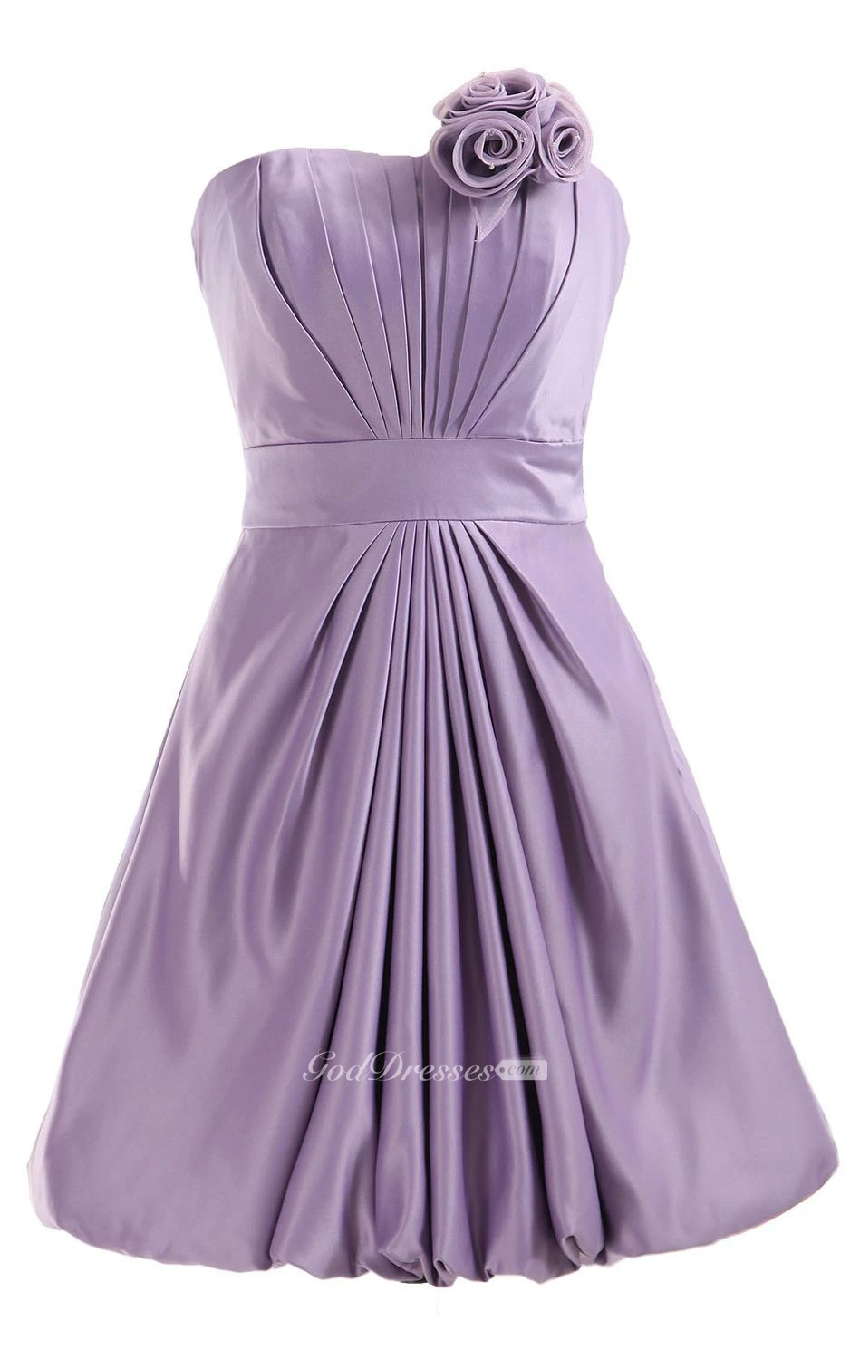 Strapless Appliqued Ruched Bodice Short Pleated Satin Dress