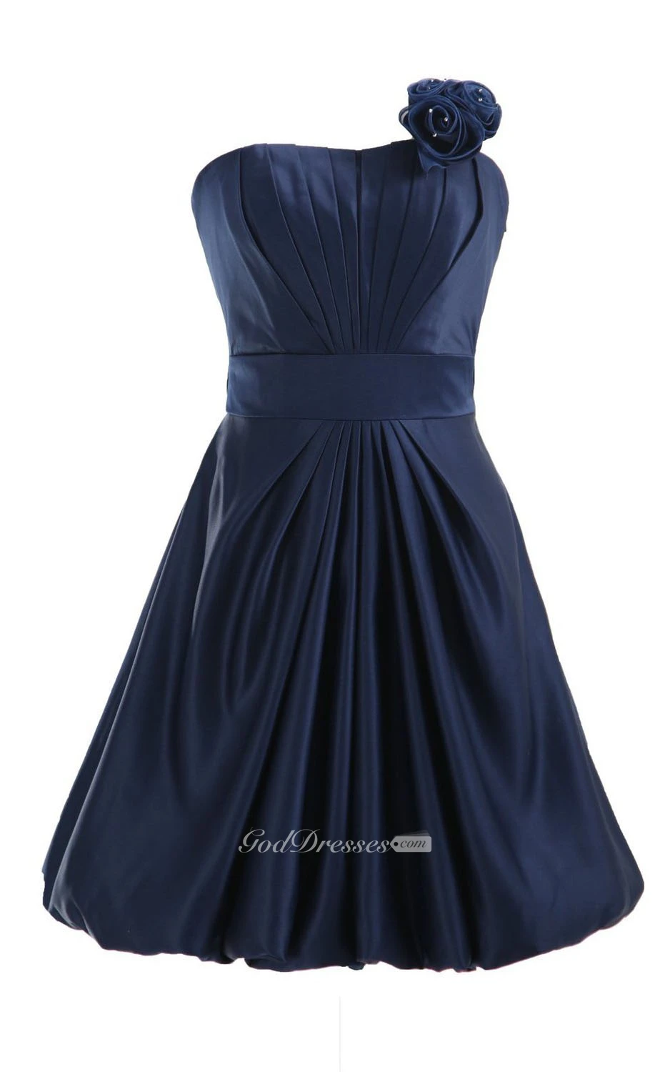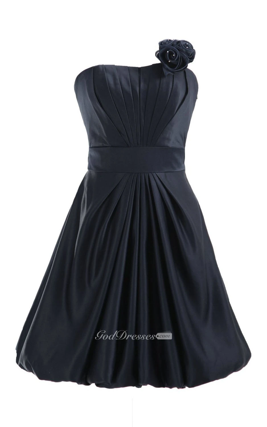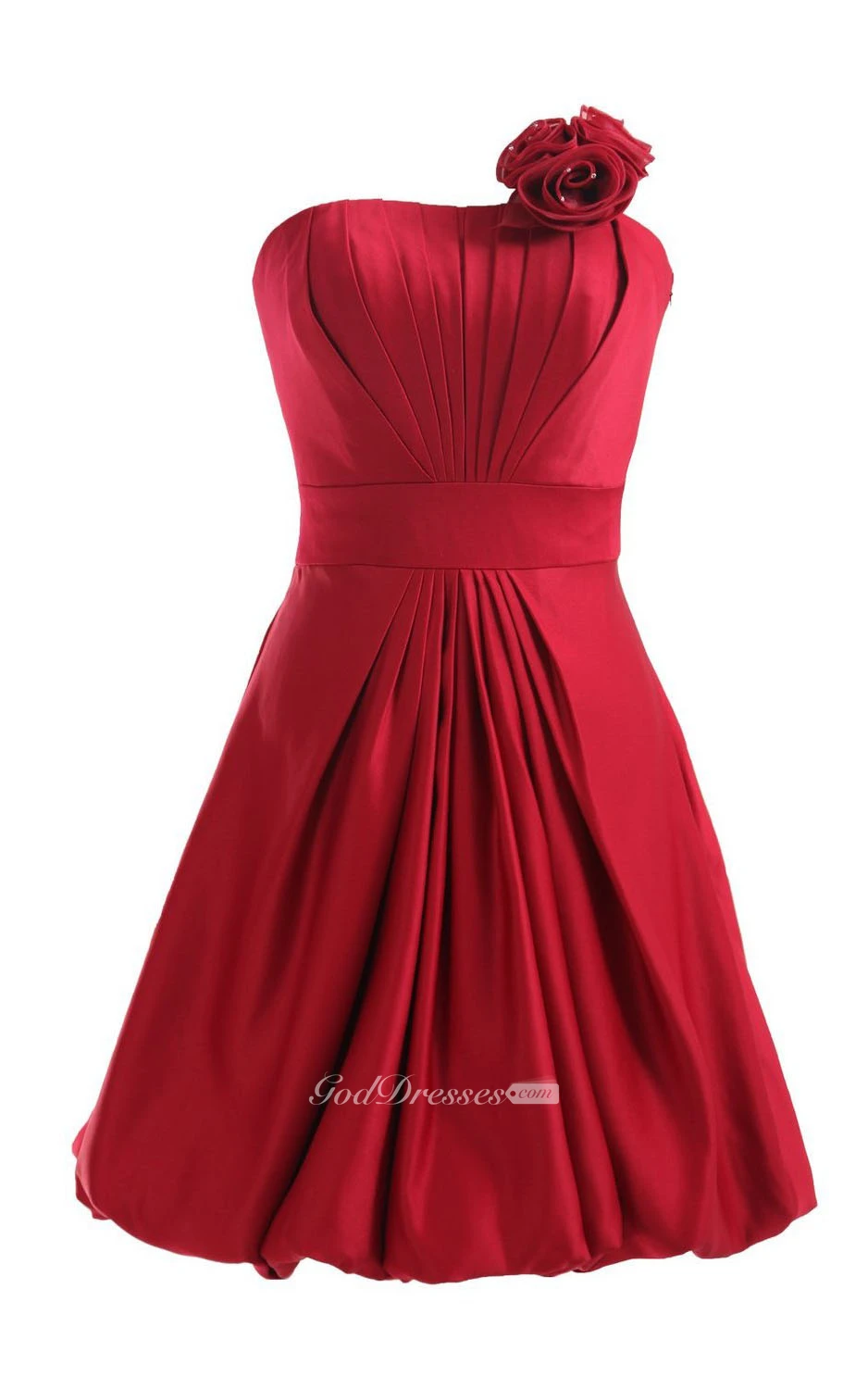 Strapless Appliqued Ruched Bodice Short Pleated Satin Dress
