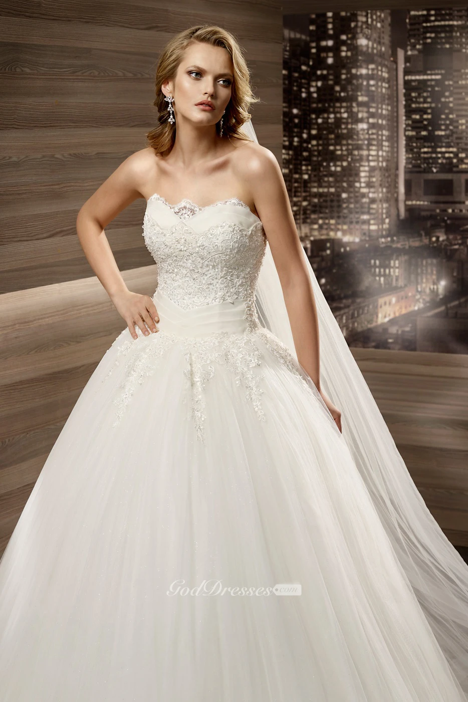 Strapless Appliques A-Line Bridal Gown With Pleated Waist And Lace-Up Back
