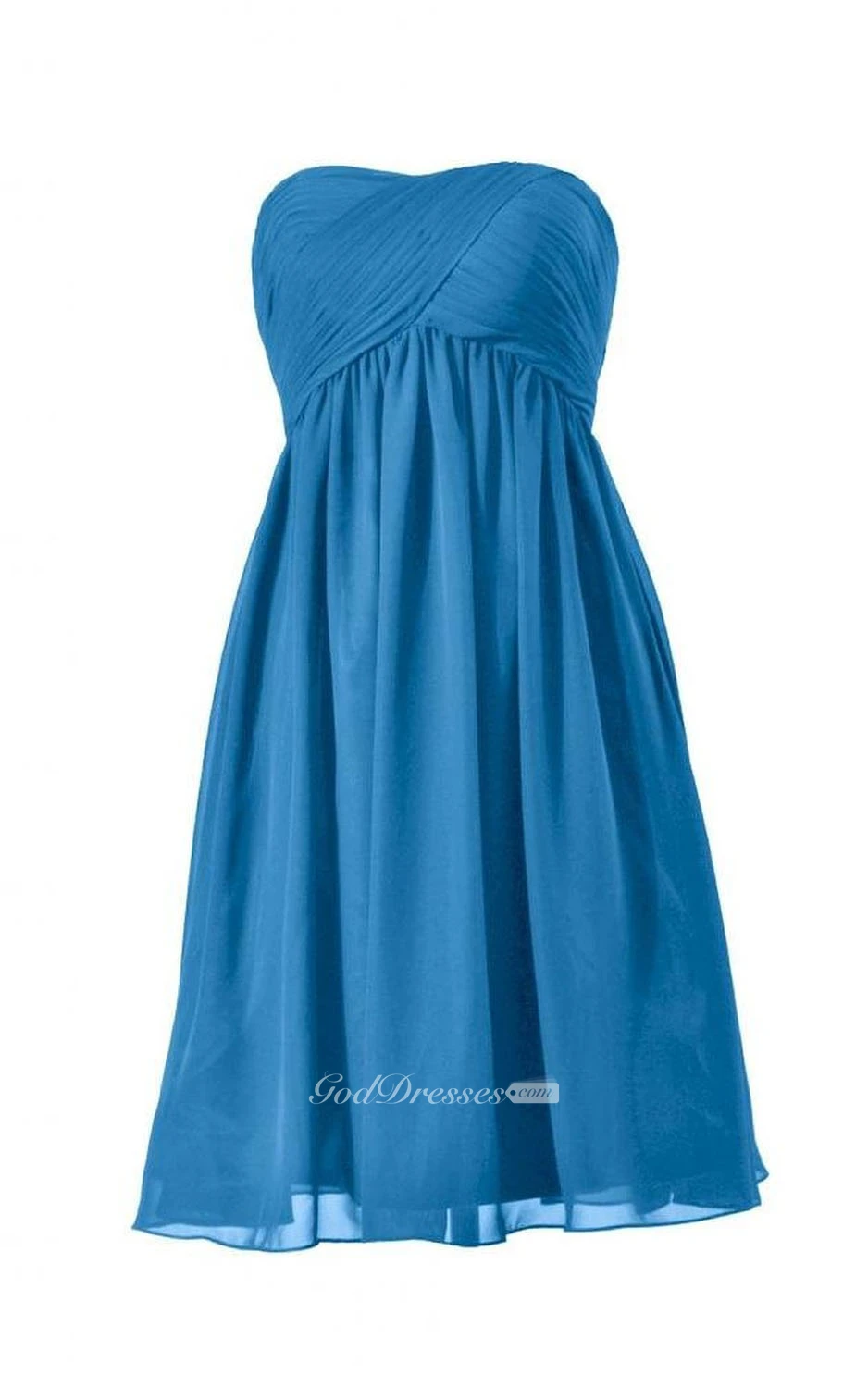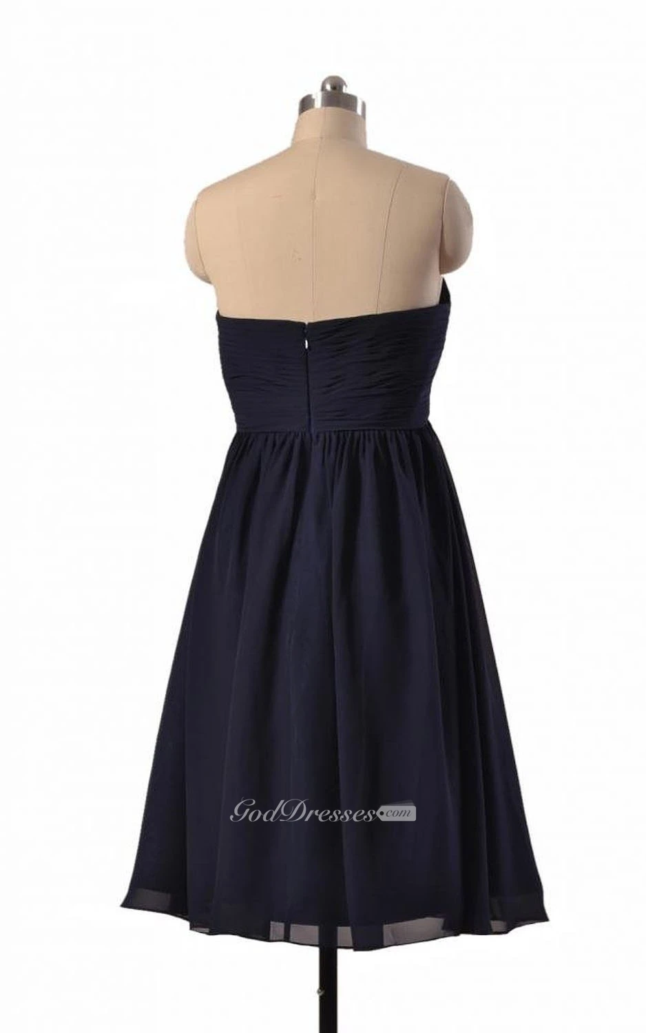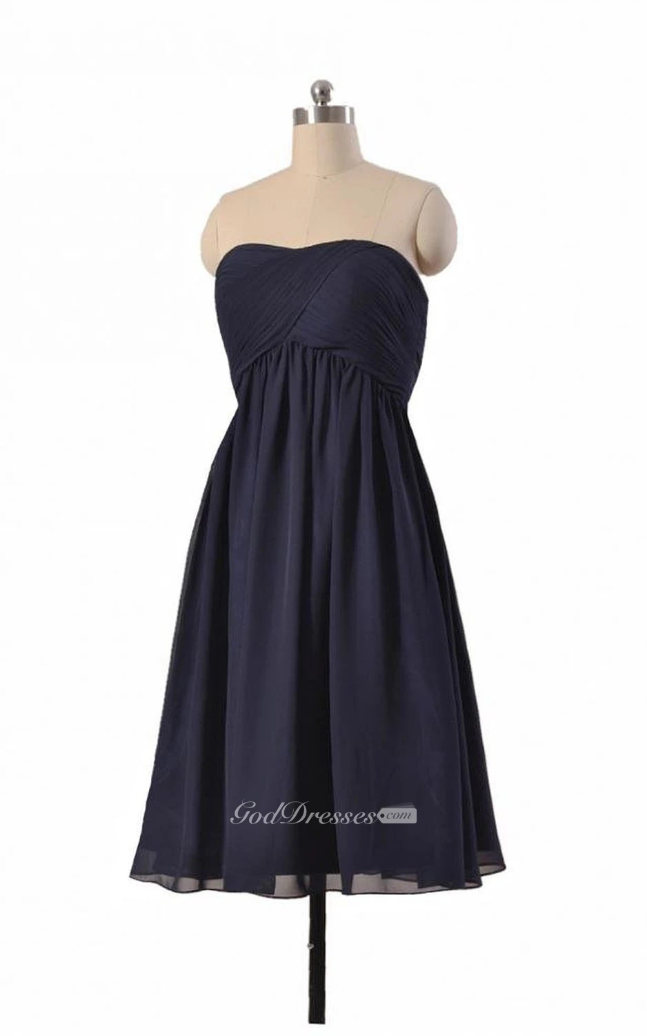 Strapless Asymmetrical Ruched Bodice Knee-length Pleated Chiffon Dress