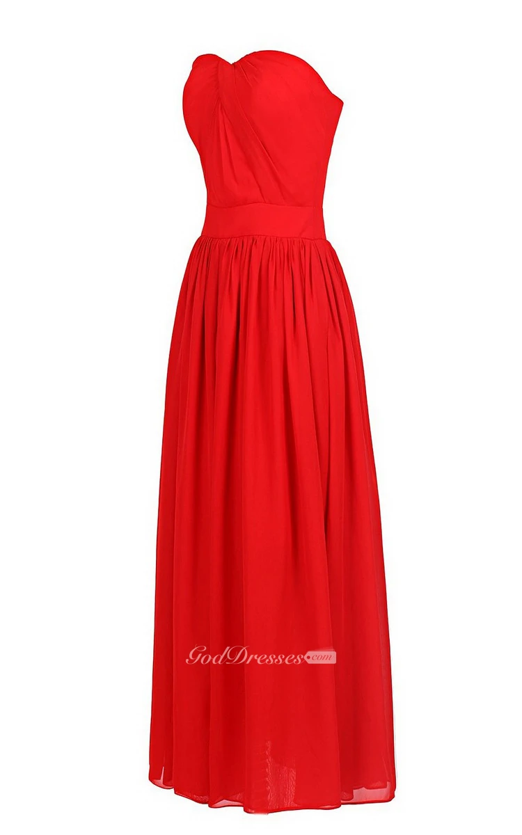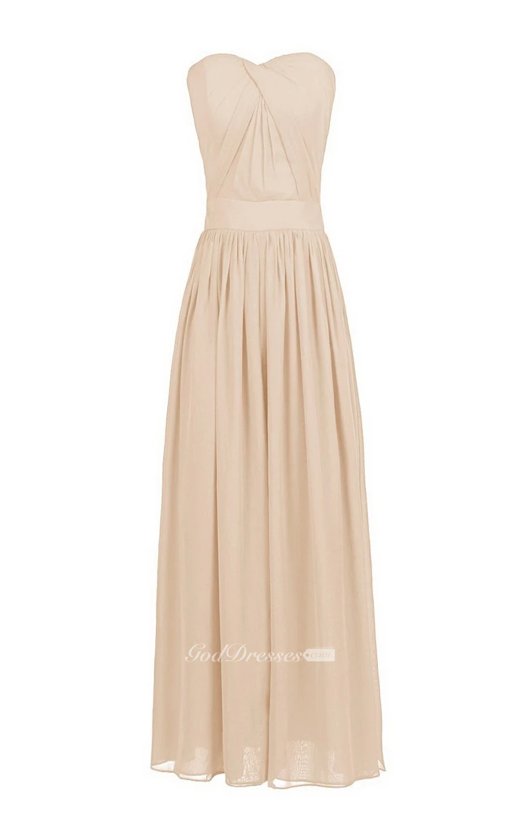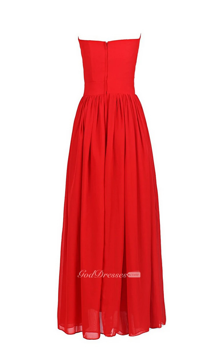 Strapless Chiffon Dress With Crisscross Pleats