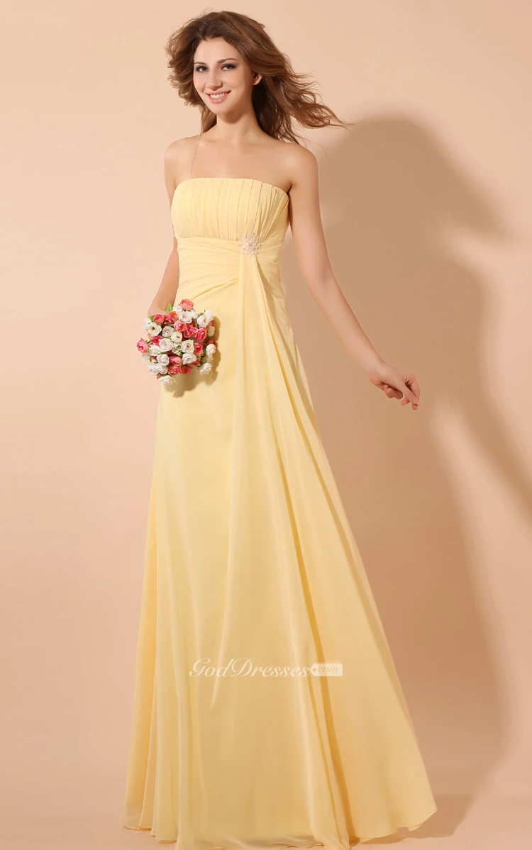 Strapless Chiffon Empire Dress With Pleating and Broach
