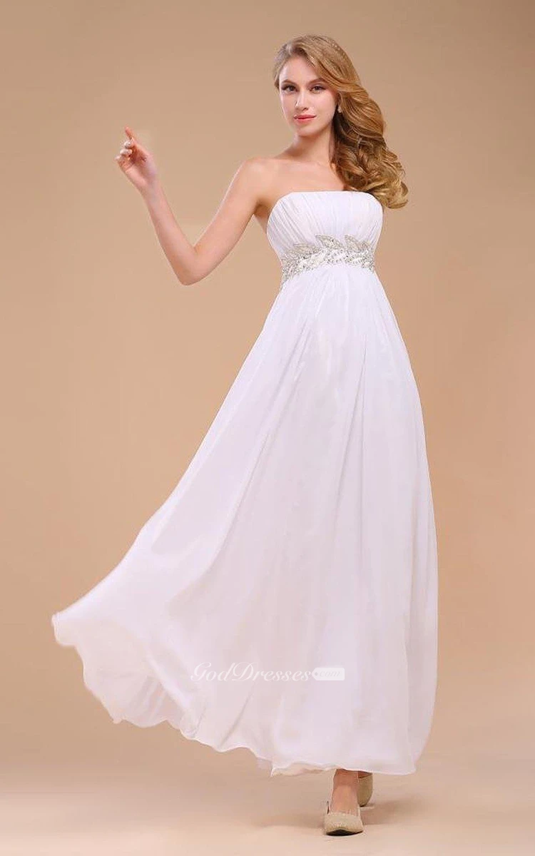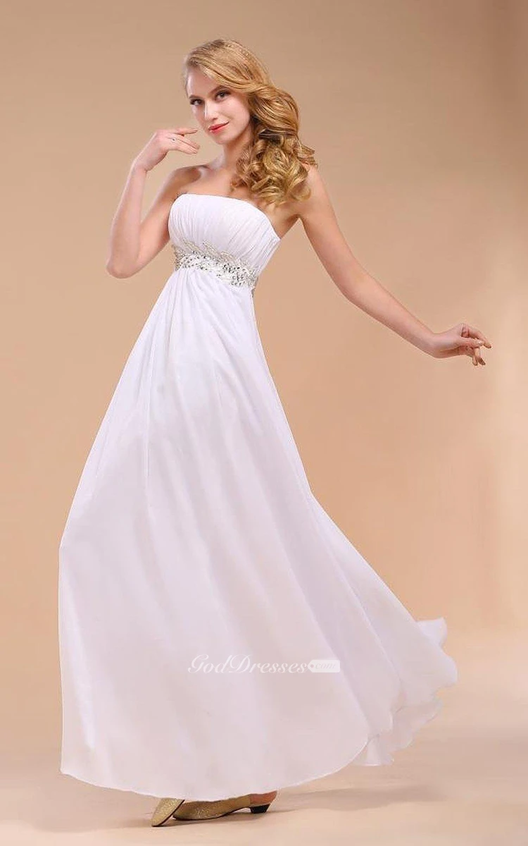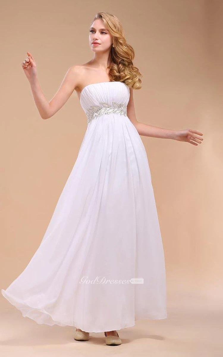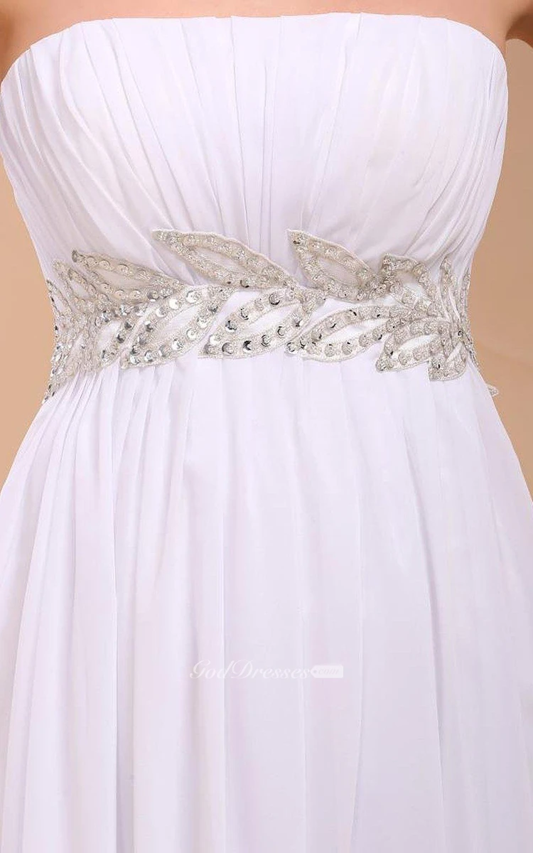 Strapless Chiffon Gown With Empire Waist and Appliques