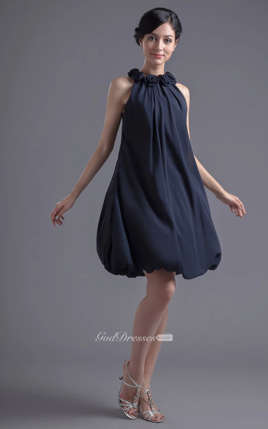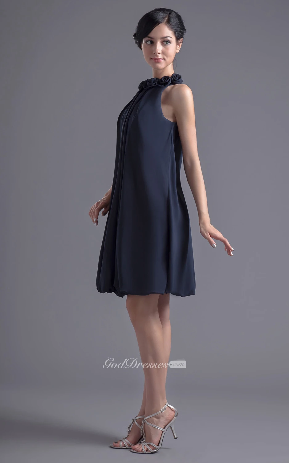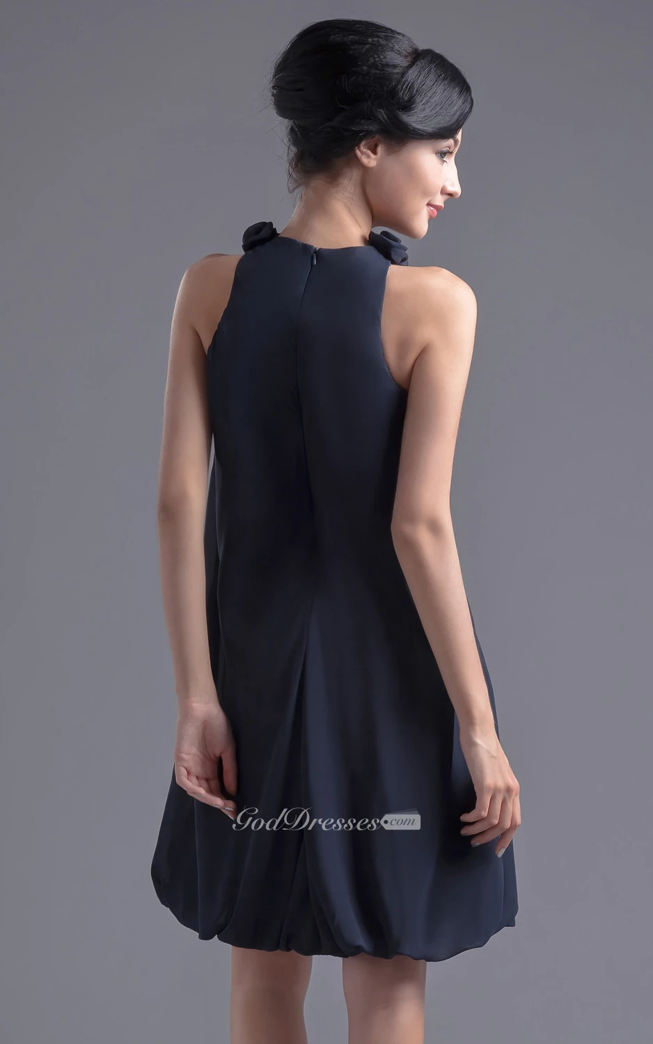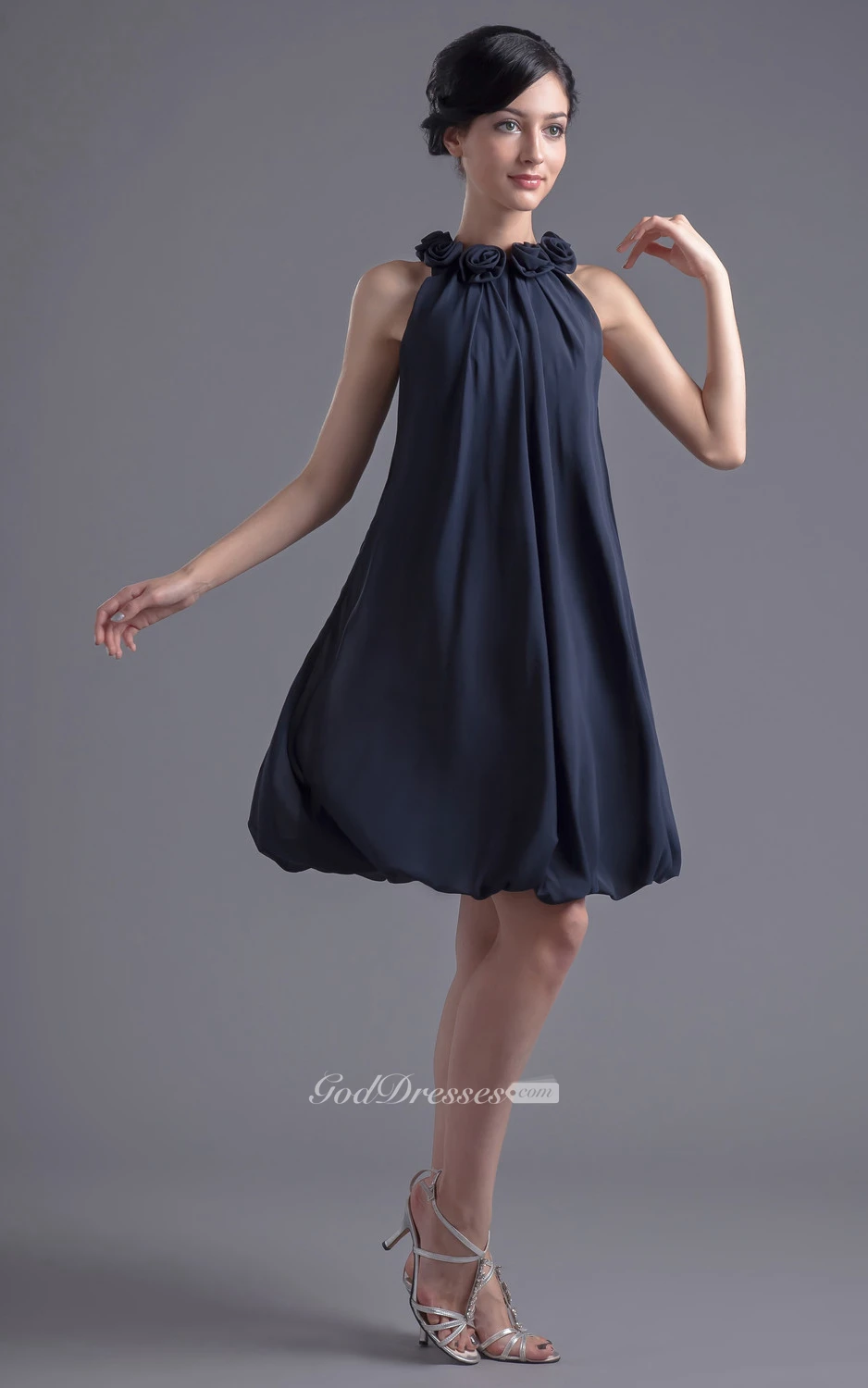 Strapless Chiffon Short Dress With Floral Neckline