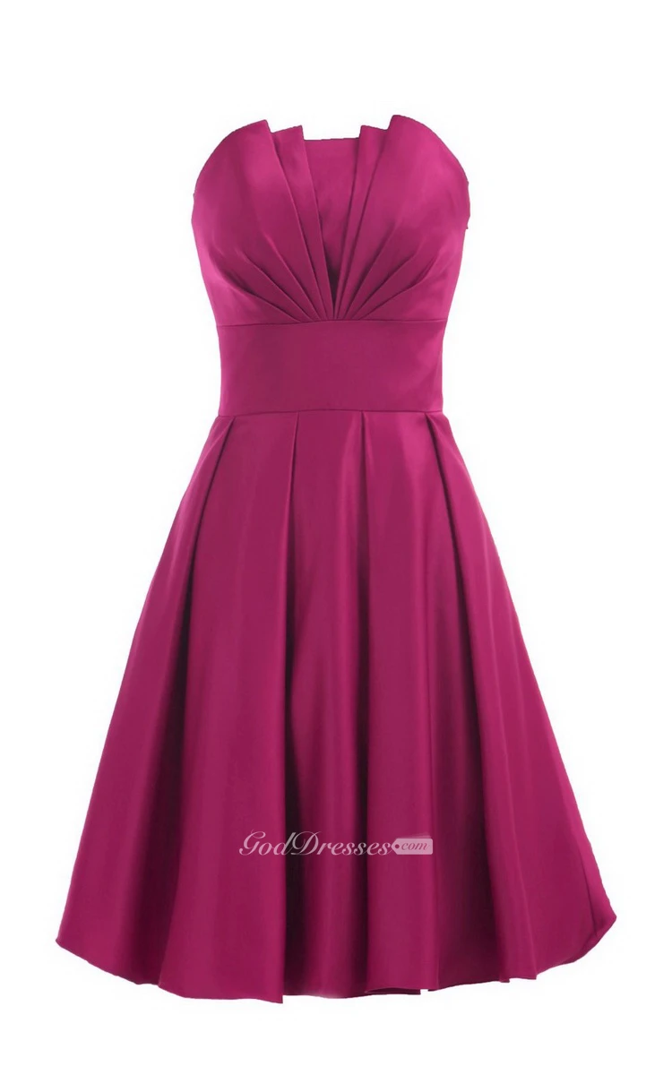 Strapless Empire A-line Mini Ruffled Satin Dress