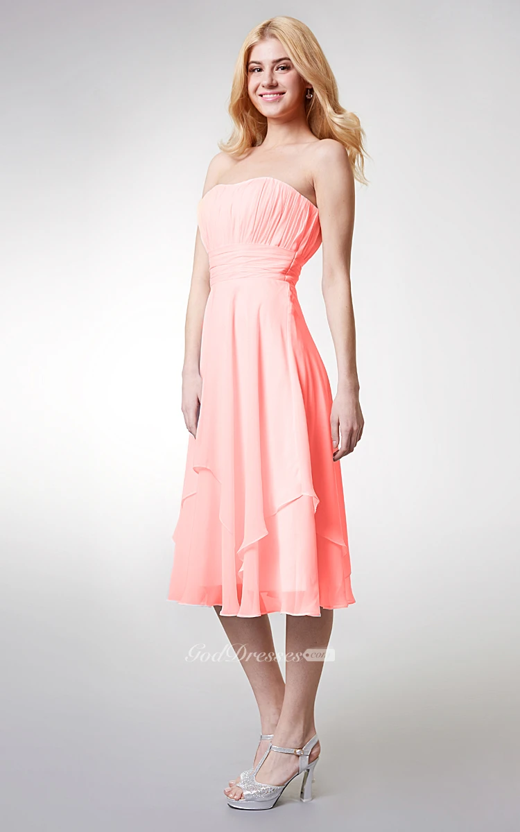 Strapless Empire Tea-length Layered Bridesmaid Dress
