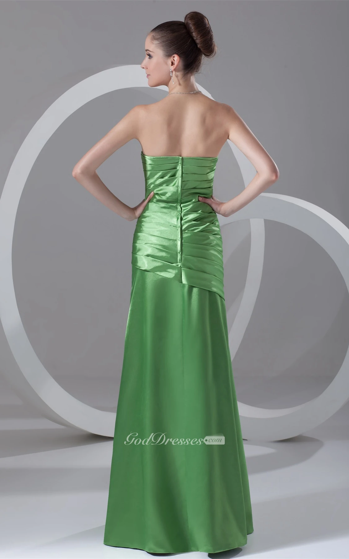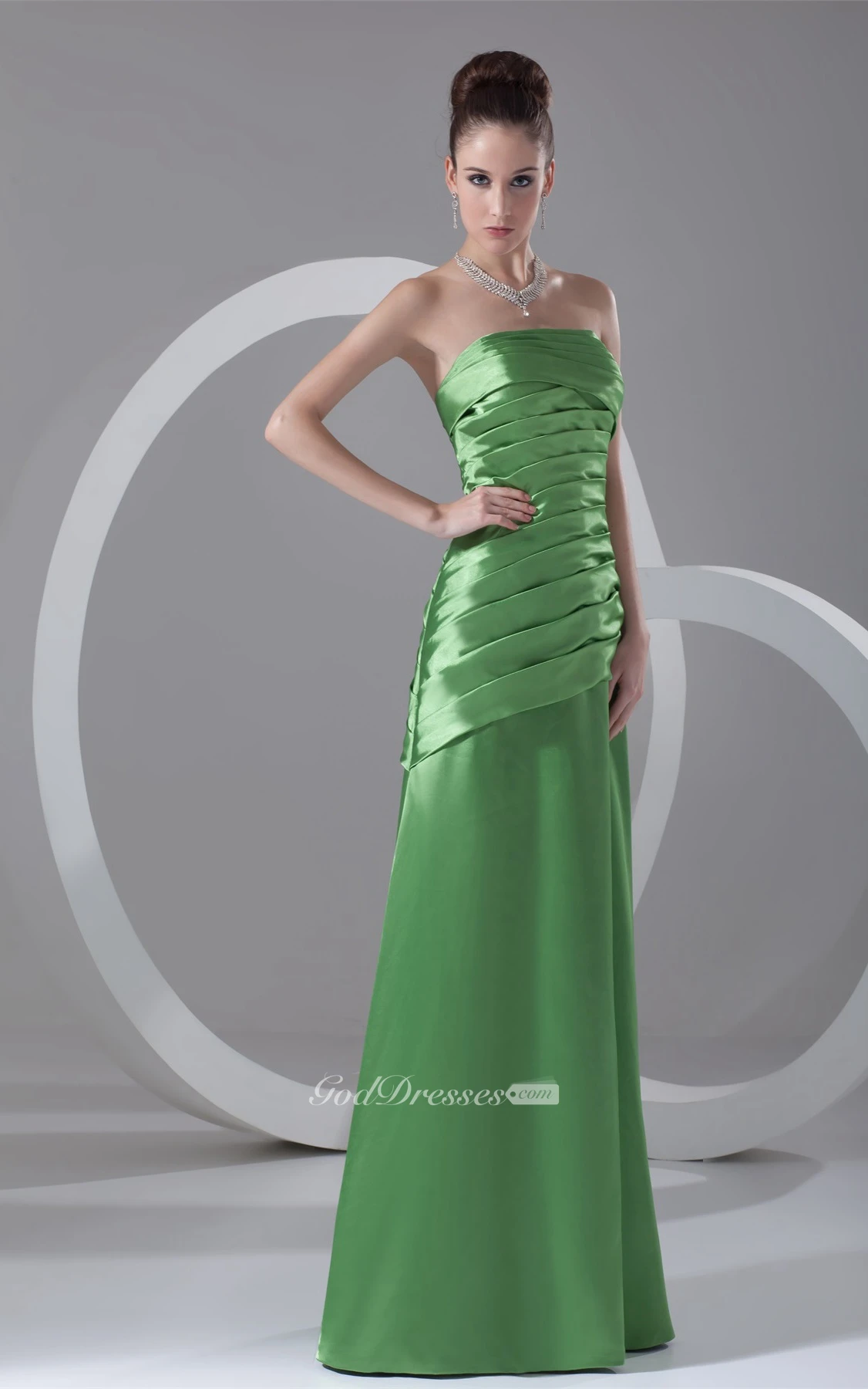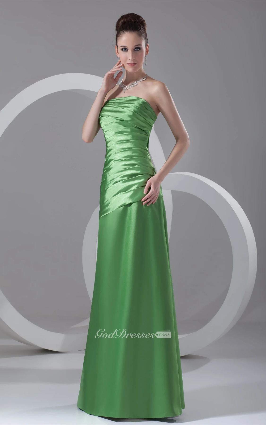 Strapless Floor-Length Satin Dress With Ruched Bodice