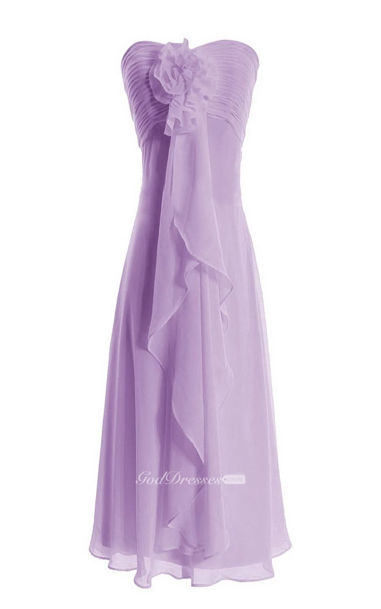 Strapless Knee-length Tiered Chiffon Dress With Flower