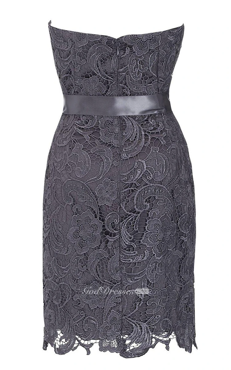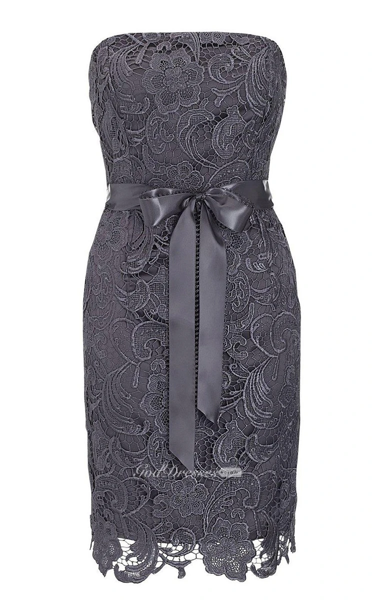 Strapless Lace Sheath Dress With Bow Tie