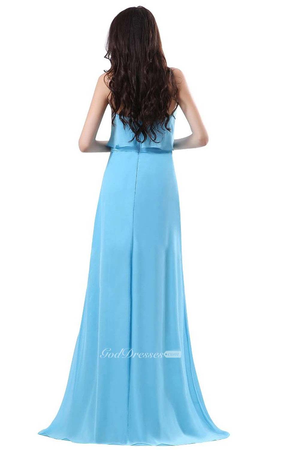 Strapless Long Layered Chiffon Dress With Side Silt