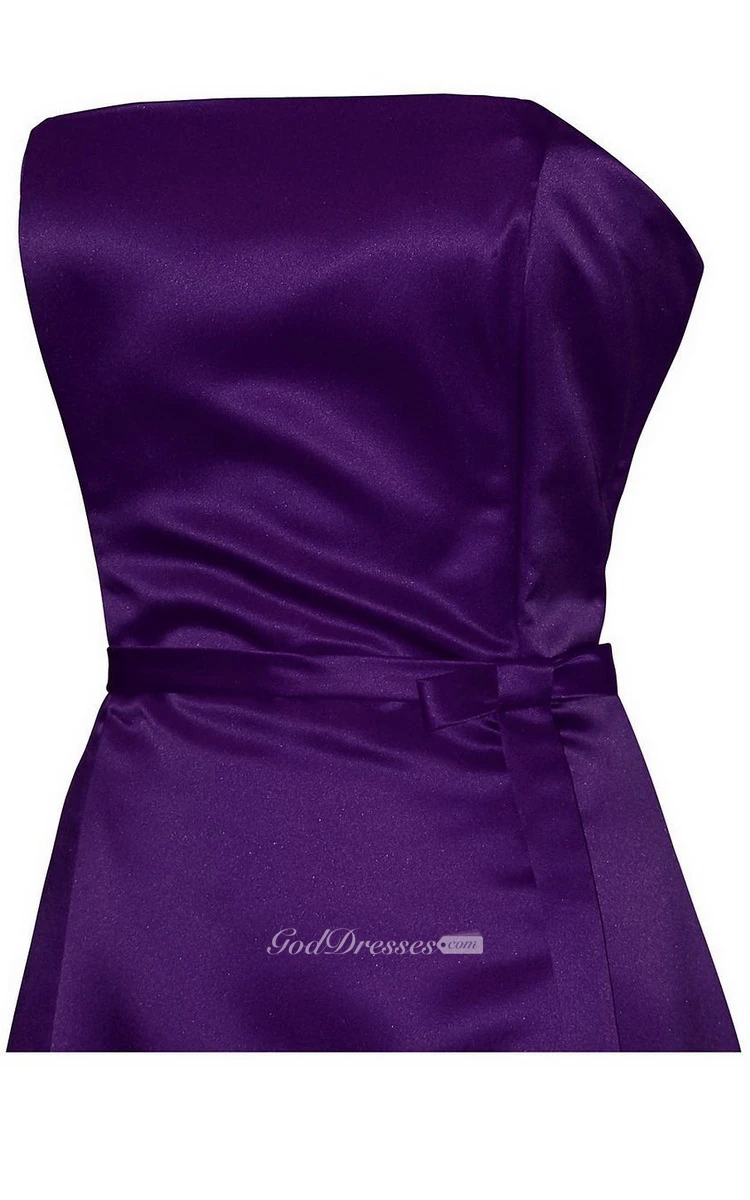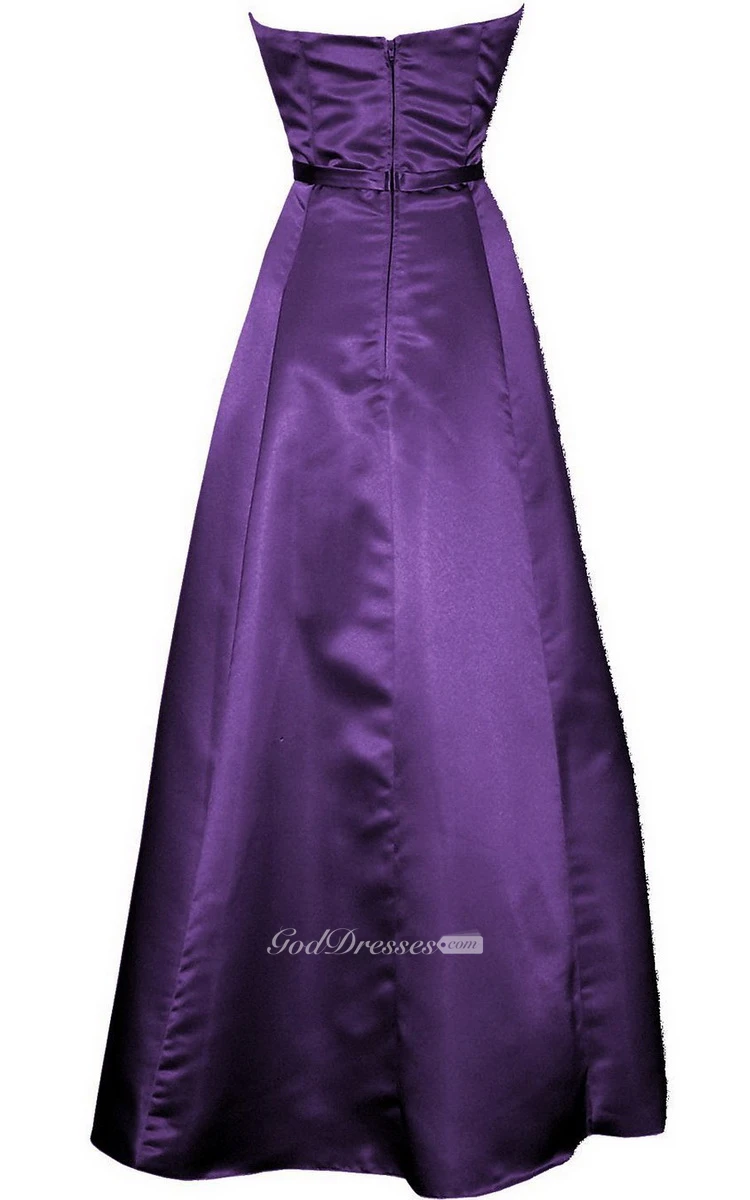 Strapless Long Satin Dress With Sash and Ruching