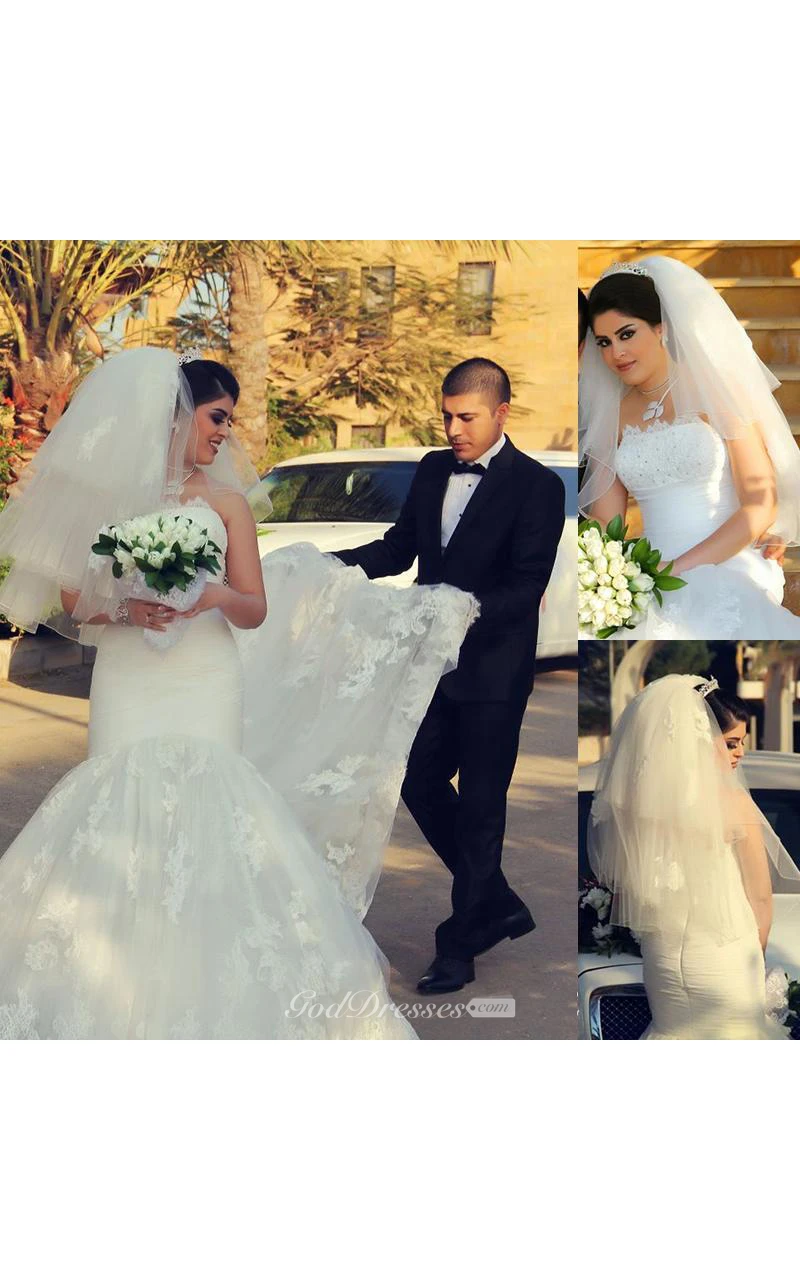 Strapless Mermaid Pleated Tulle Long Dress With Lace