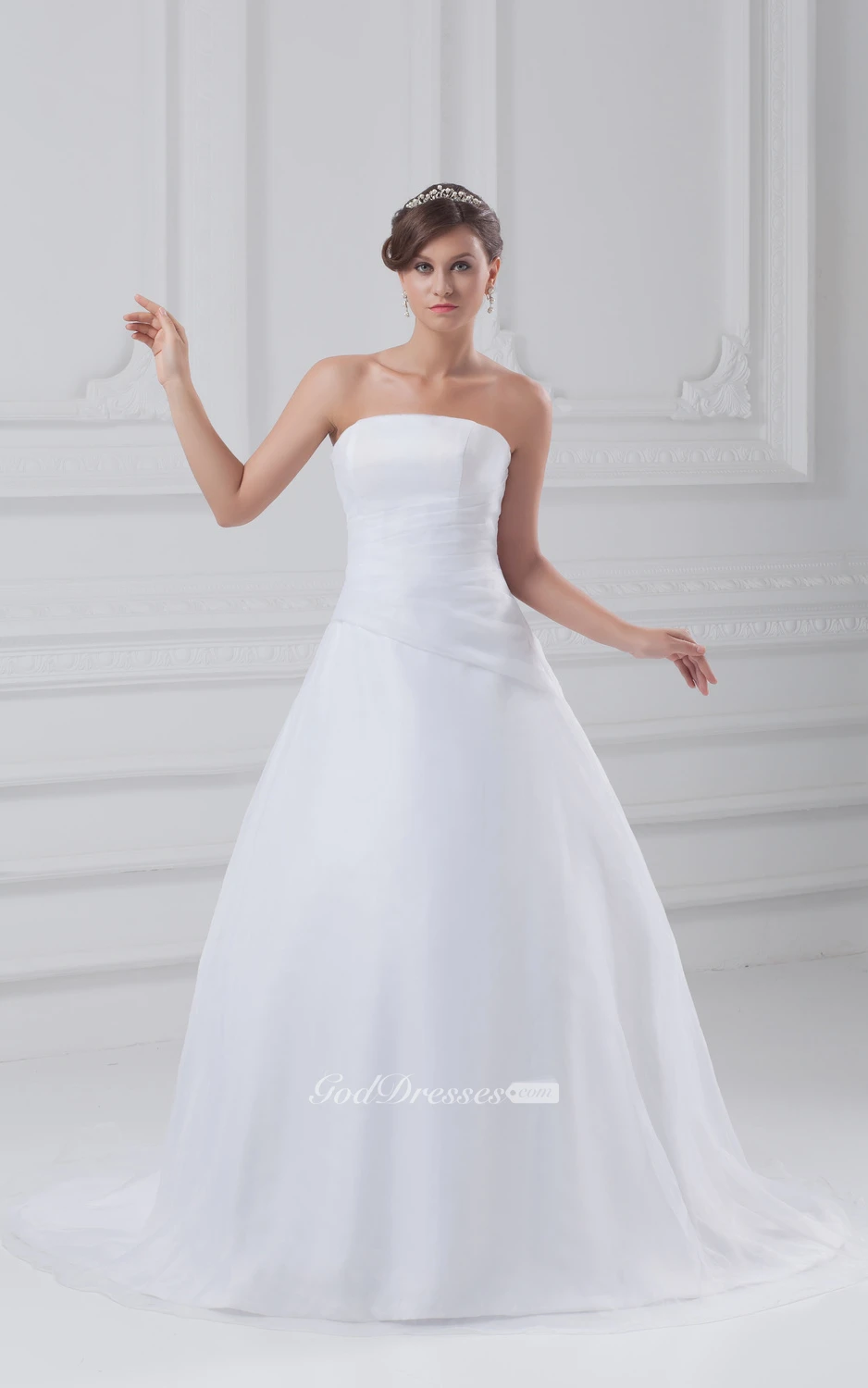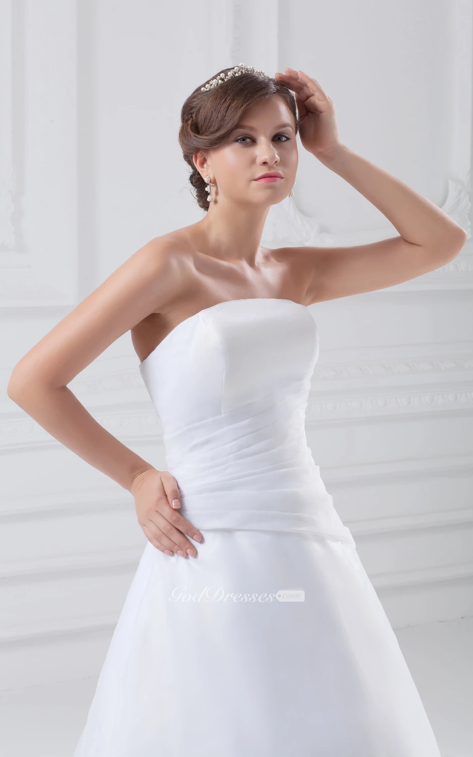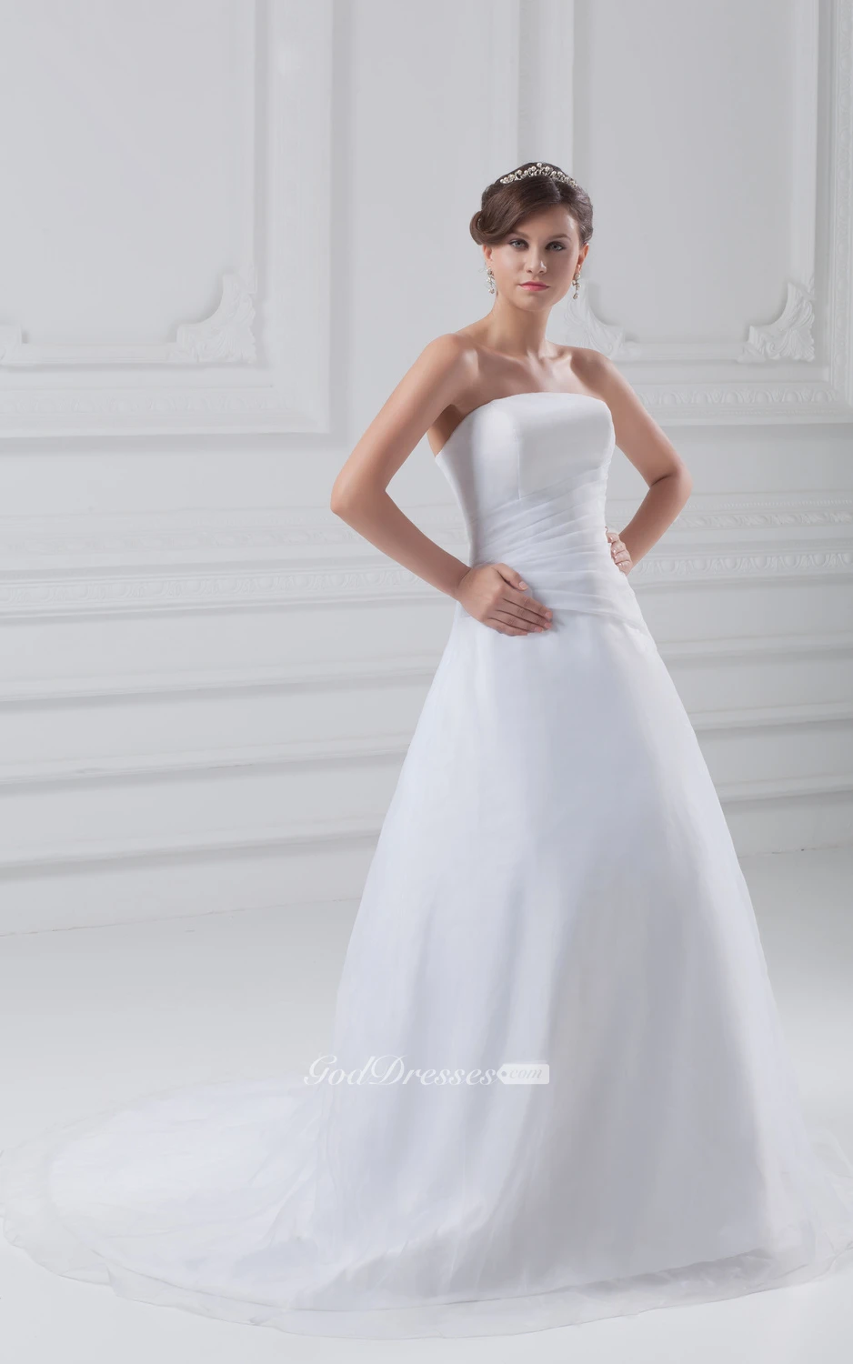 Strapless Organza A-Line Dress With Ruching and Court Train