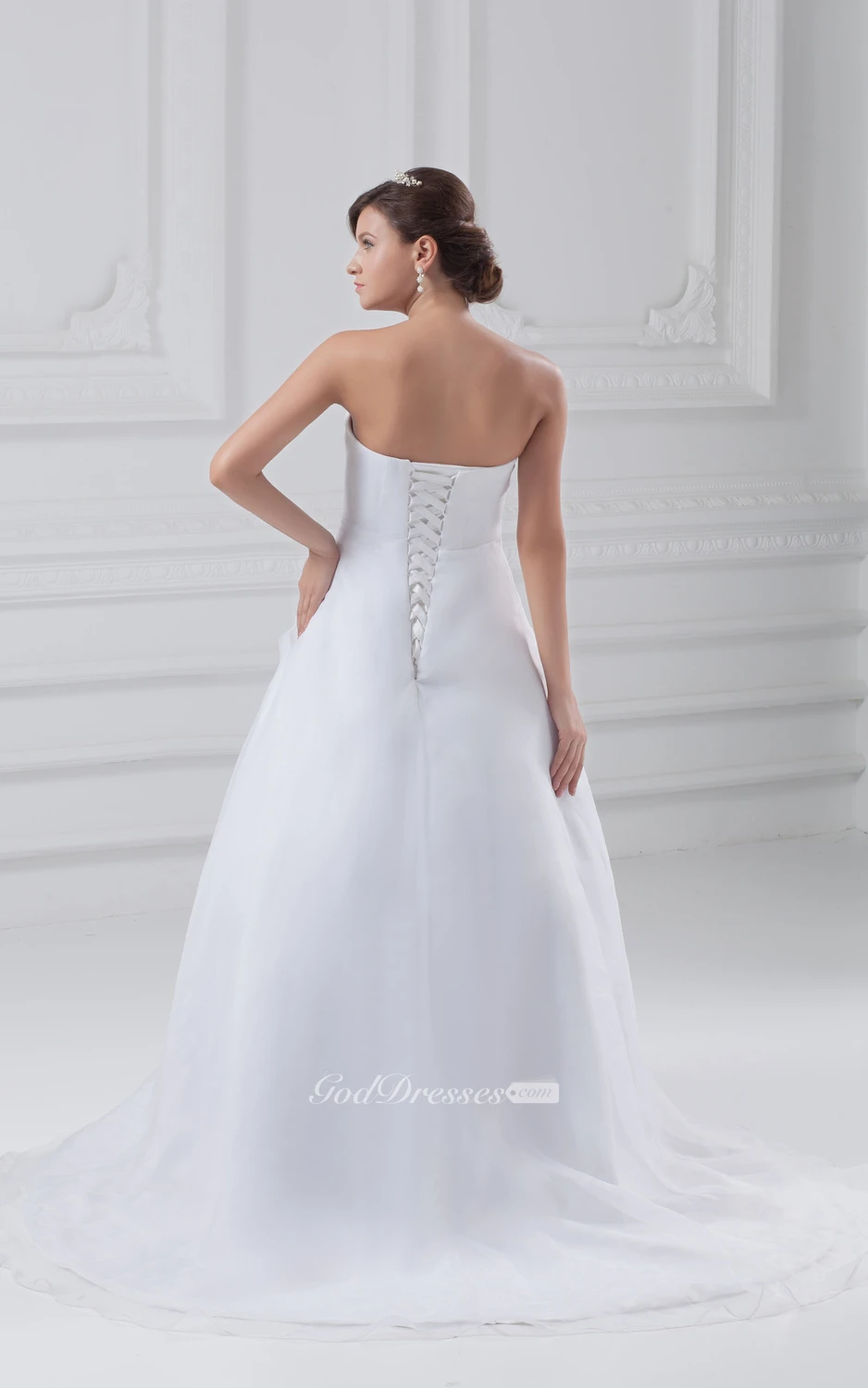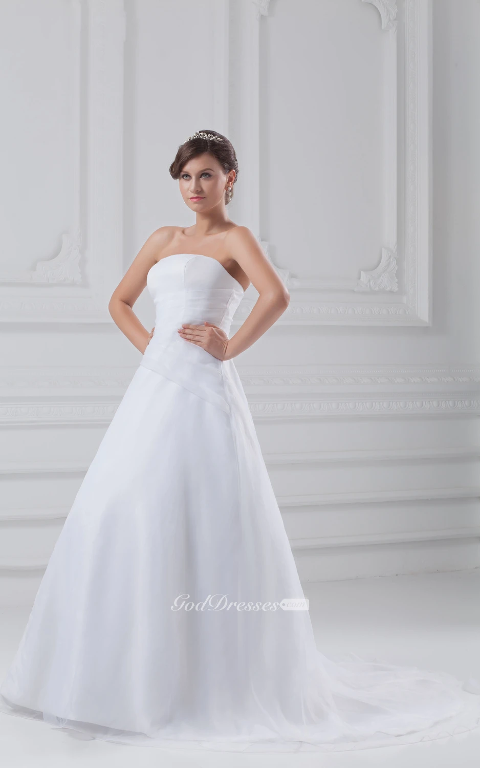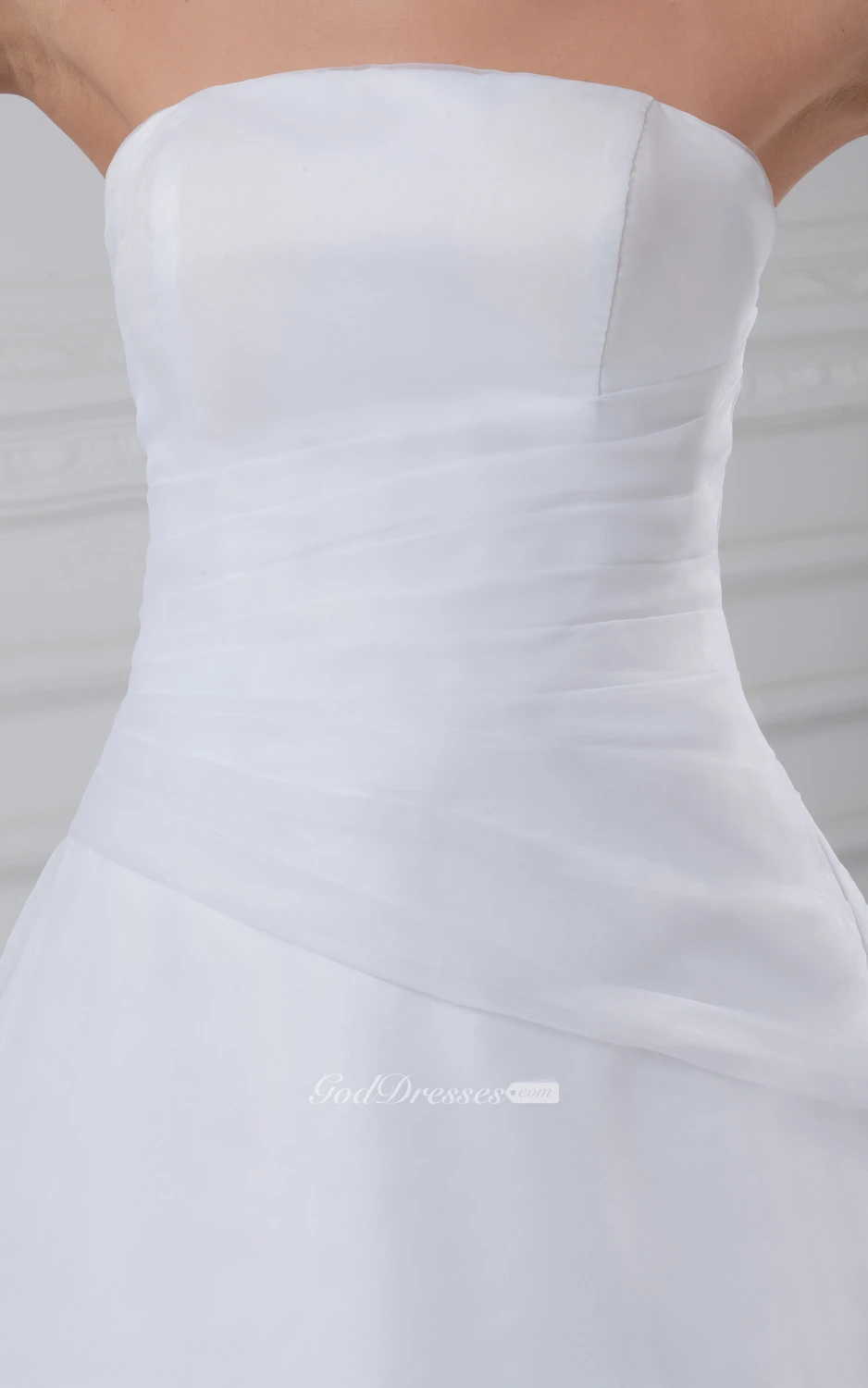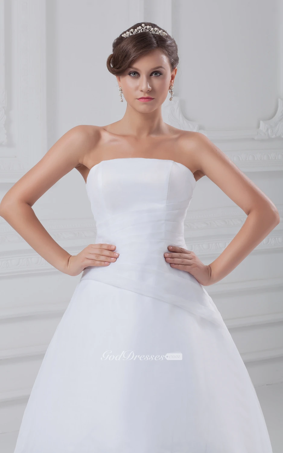 Strapless Organza A-Line Dress With Ruching and Court Train