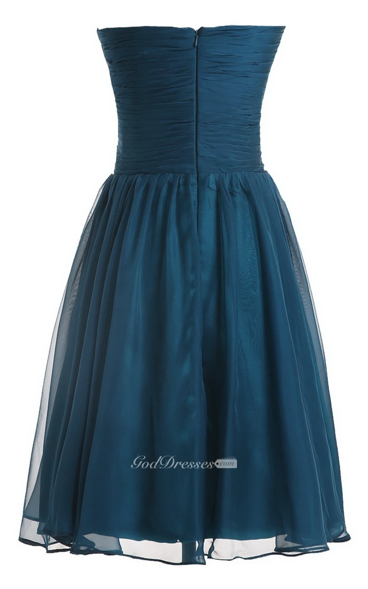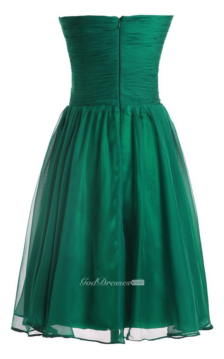 Strapless Pleat and Ruched A-line Dress With Leaf Print