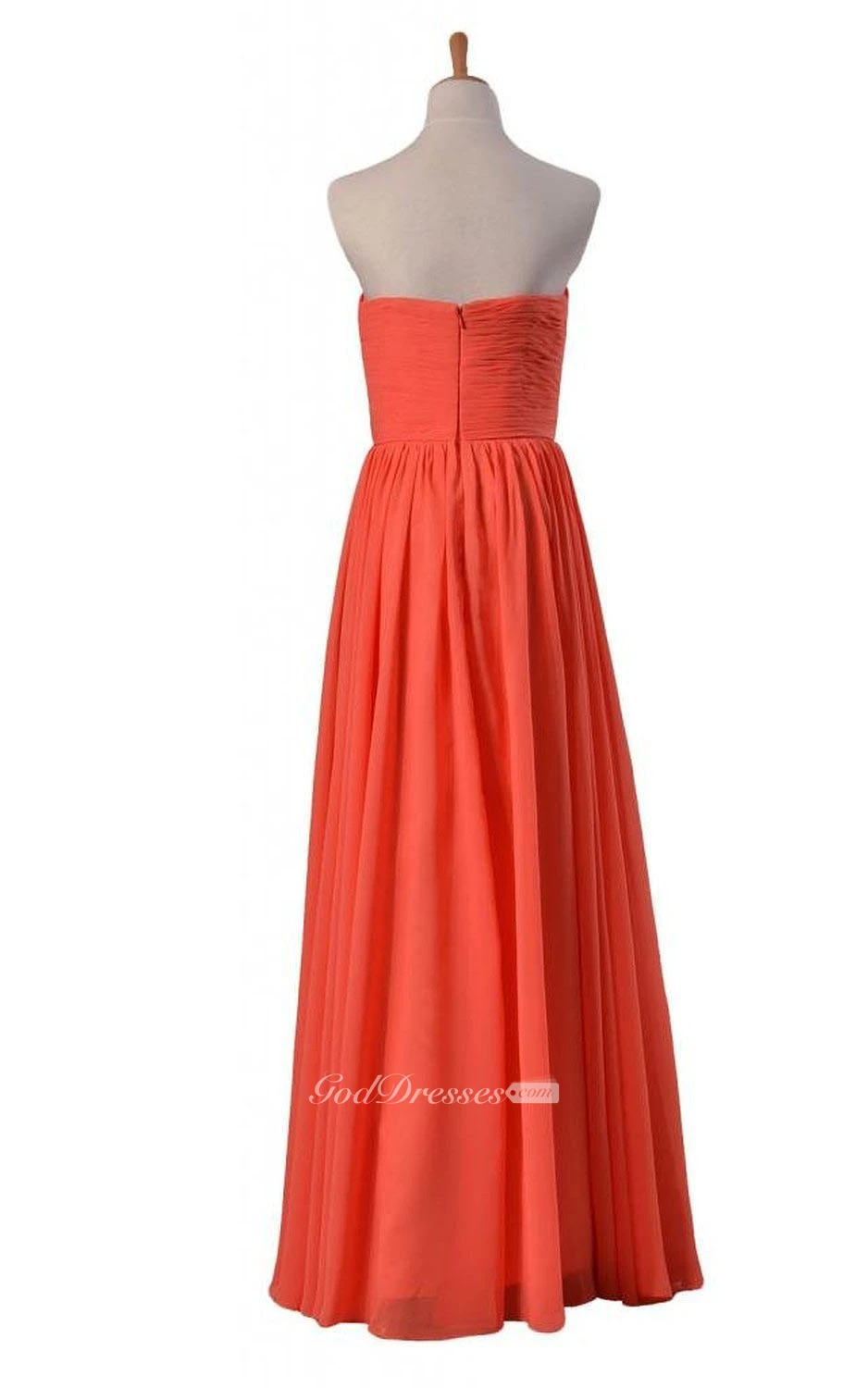 Strapless Ruched Bodice Long Pleated Chiffon Dress