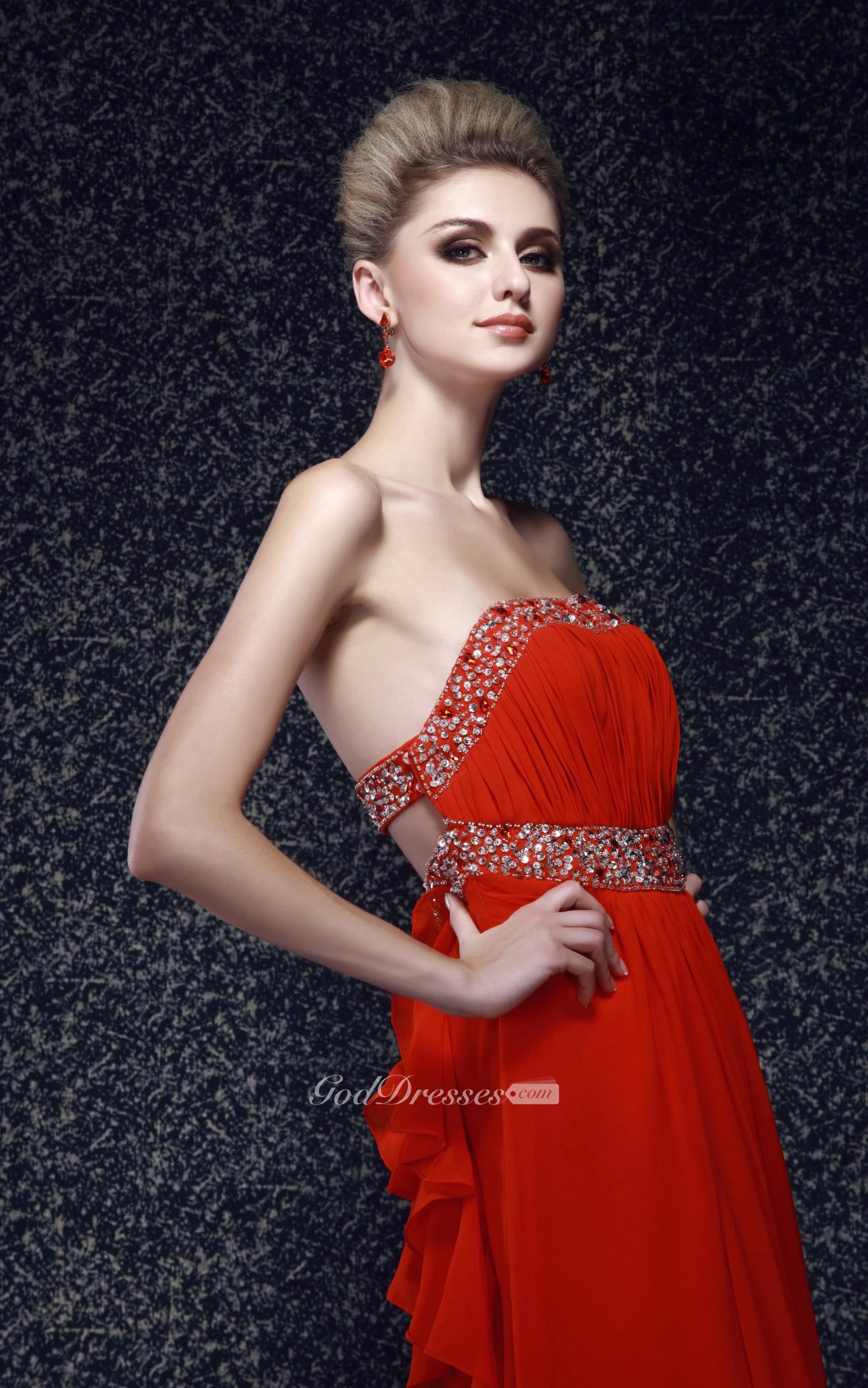 Strapless Ruched Chiffon Maxi Dress With Beaded Waist