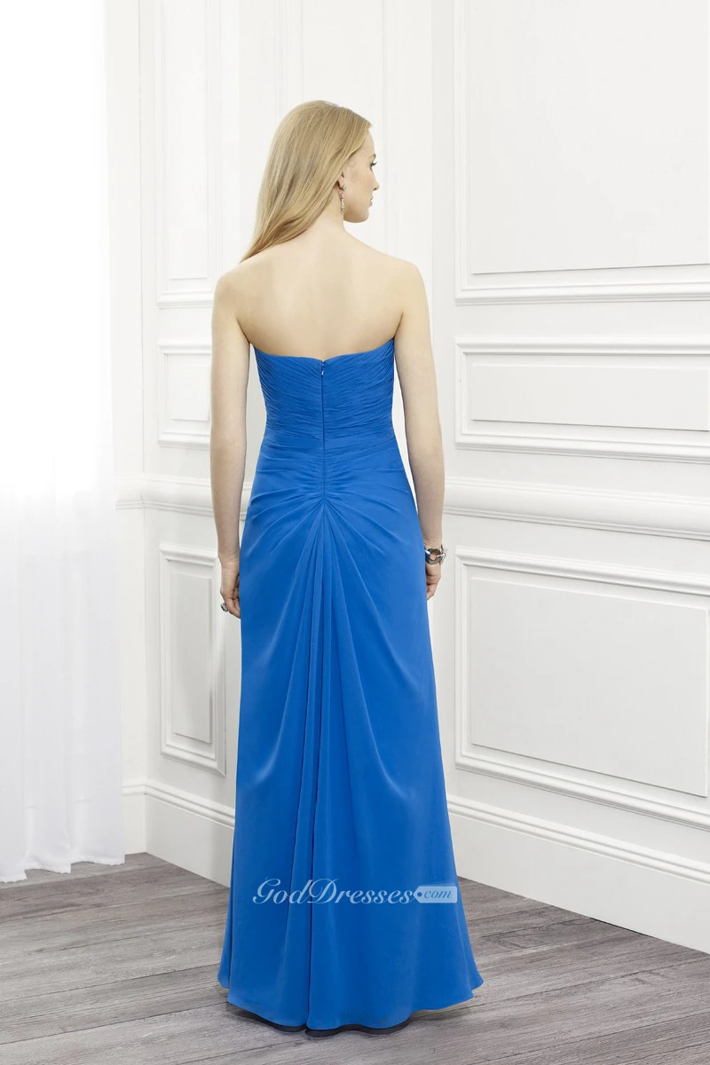 Strapless Ruched Chiffon Mother Of The Bride Dress With Beading And Cape