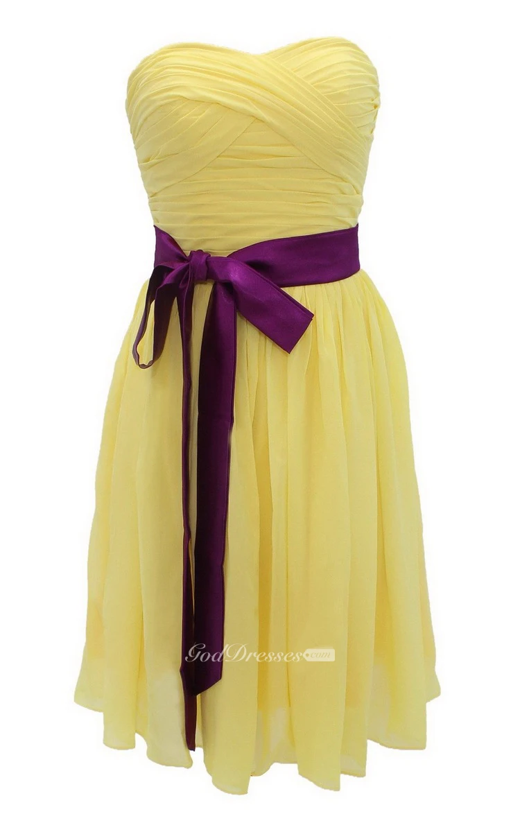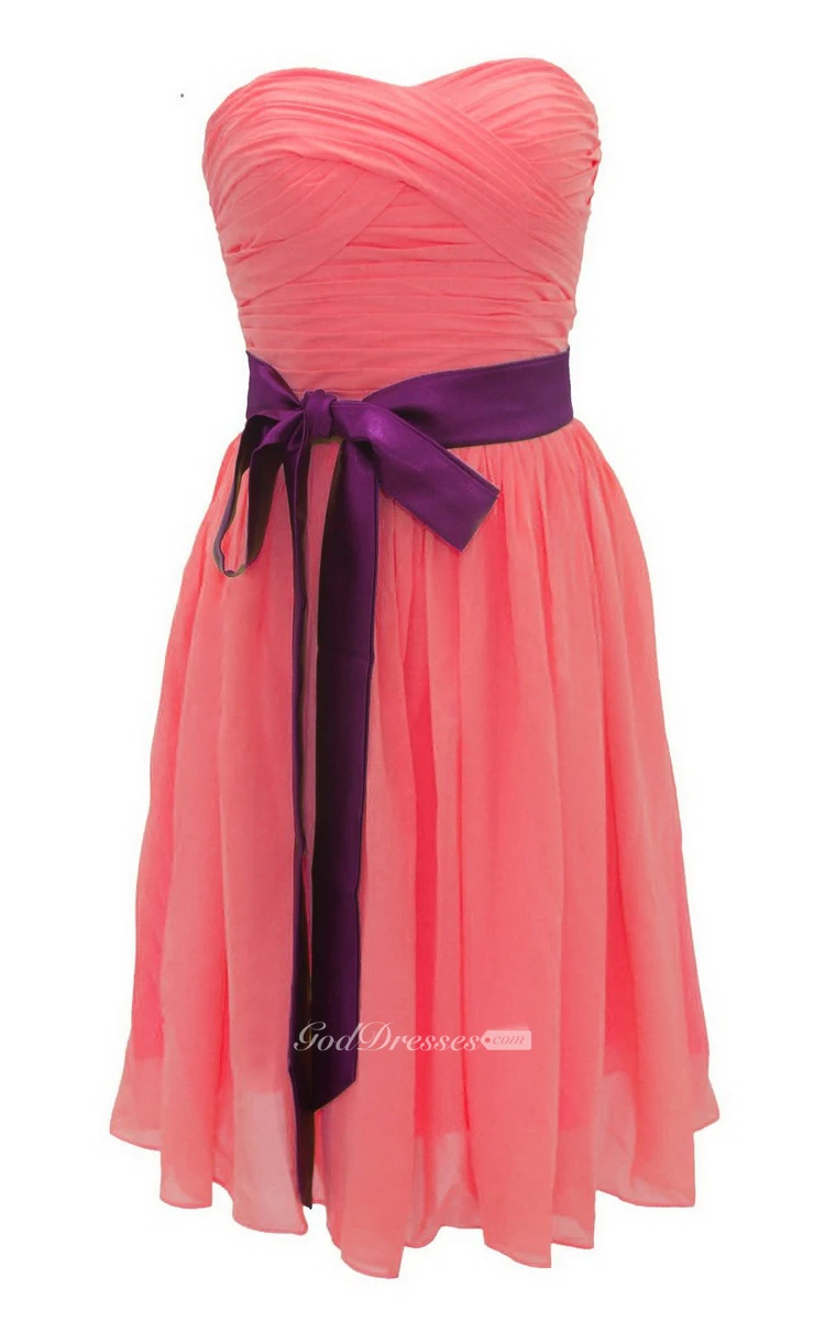 Strapless Ruched Dress WIth Satin Sash and Drapping