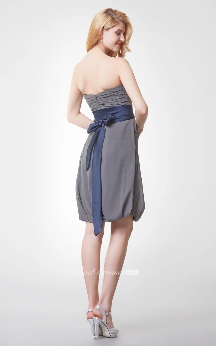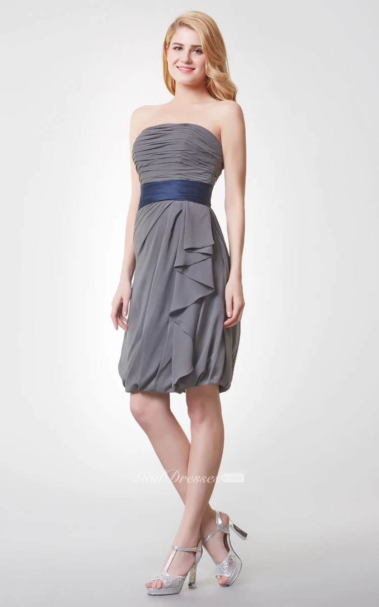 Strapless Ruched Short Chiffon Dress With Satin Sash