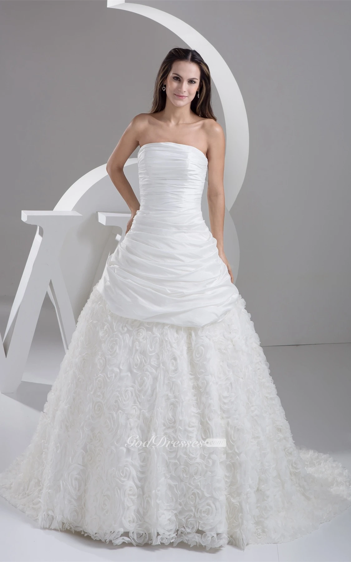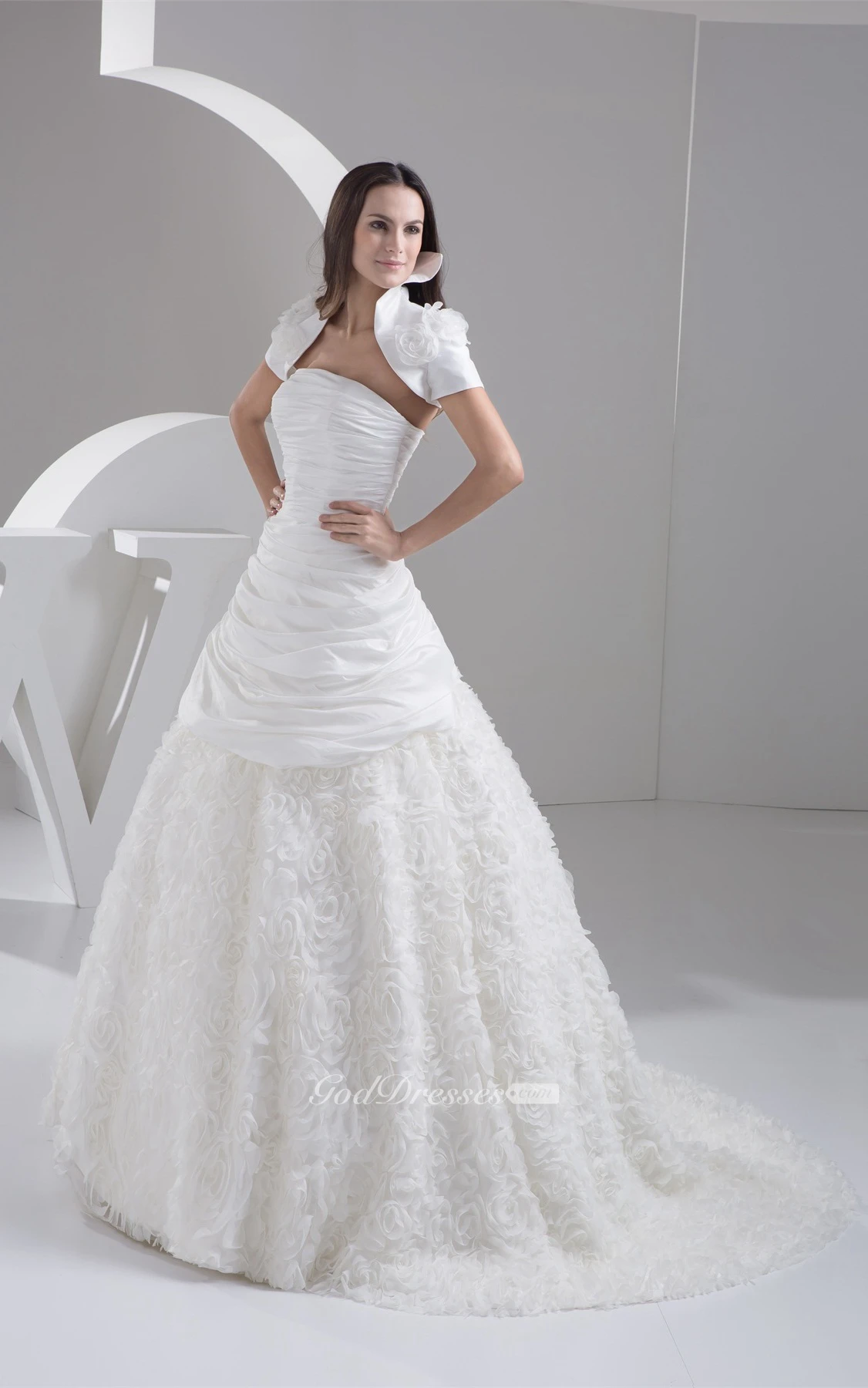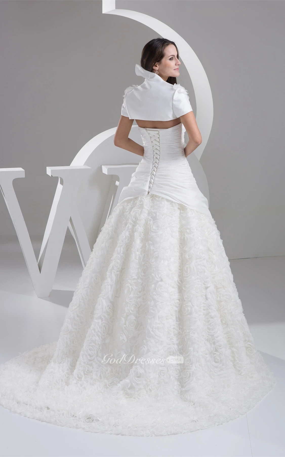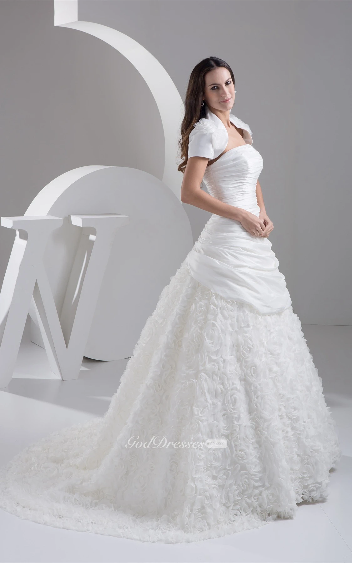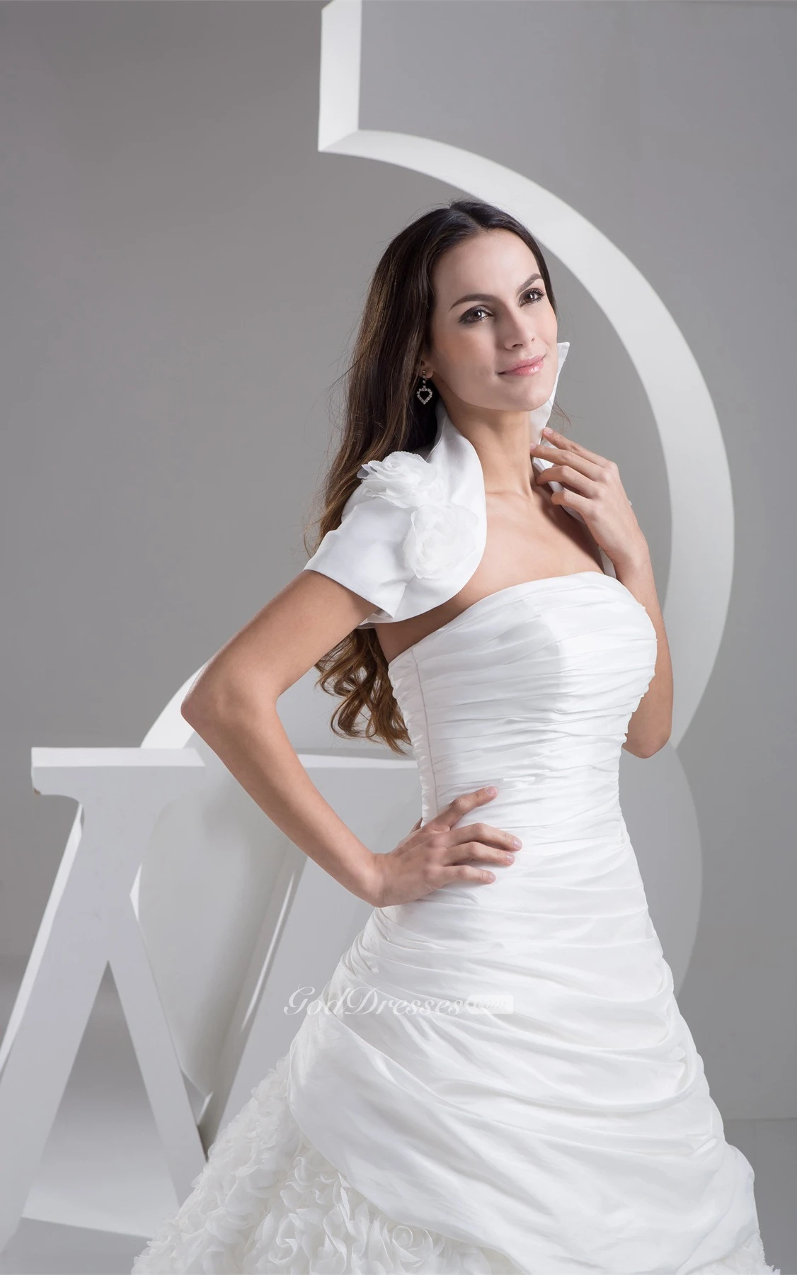 Strapless Ruffled A-Line Bolero and Gown With Ruching