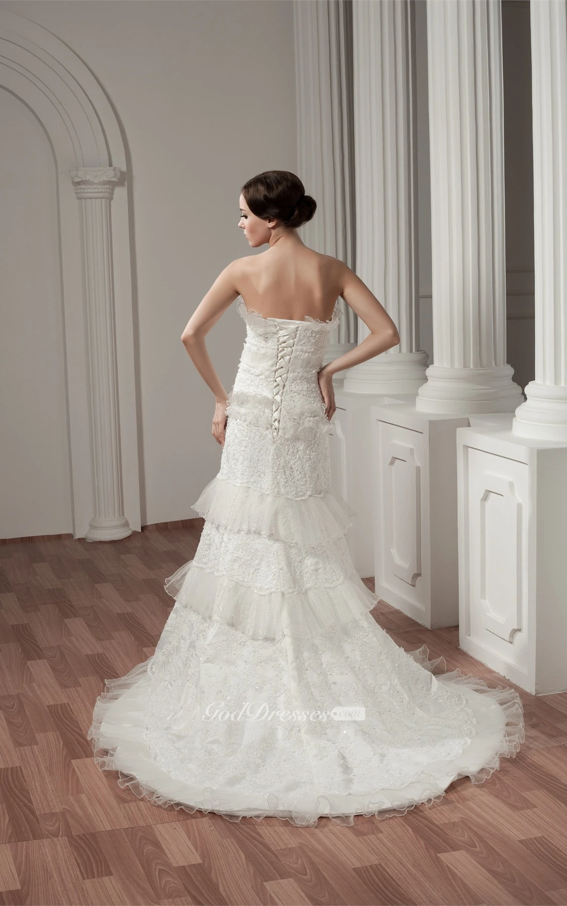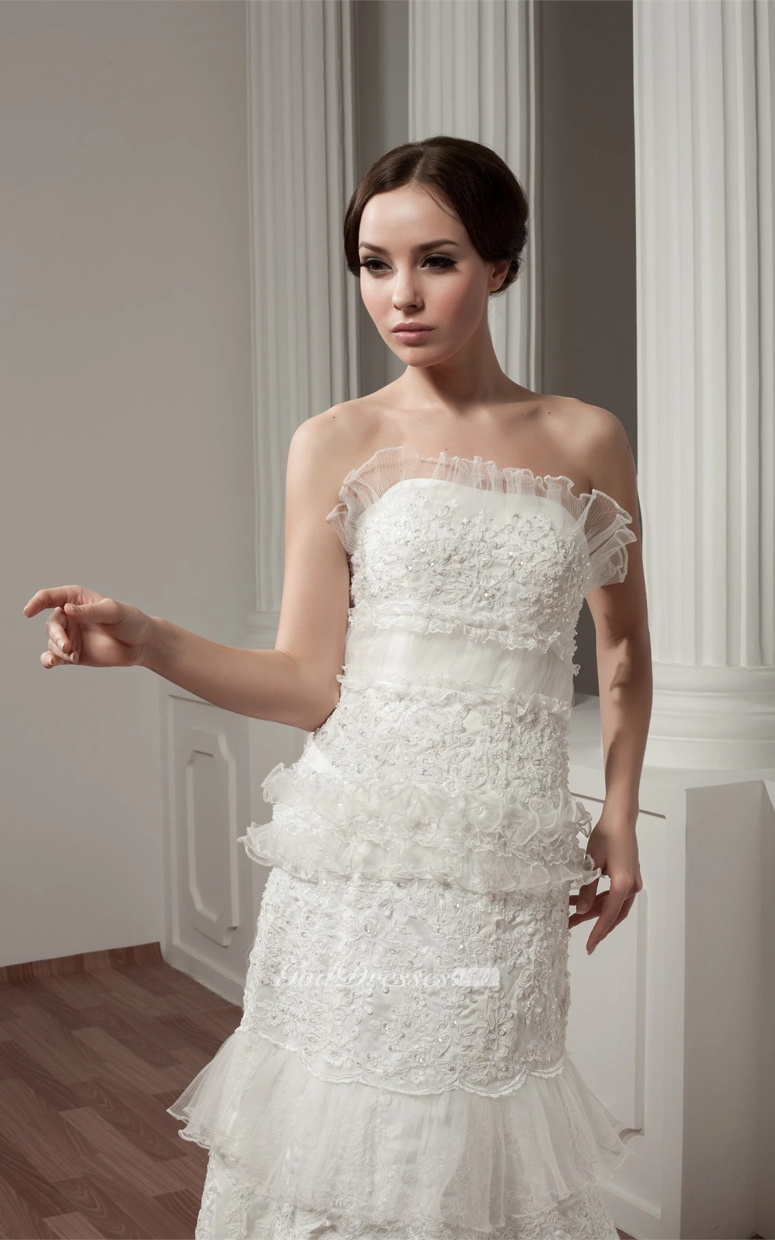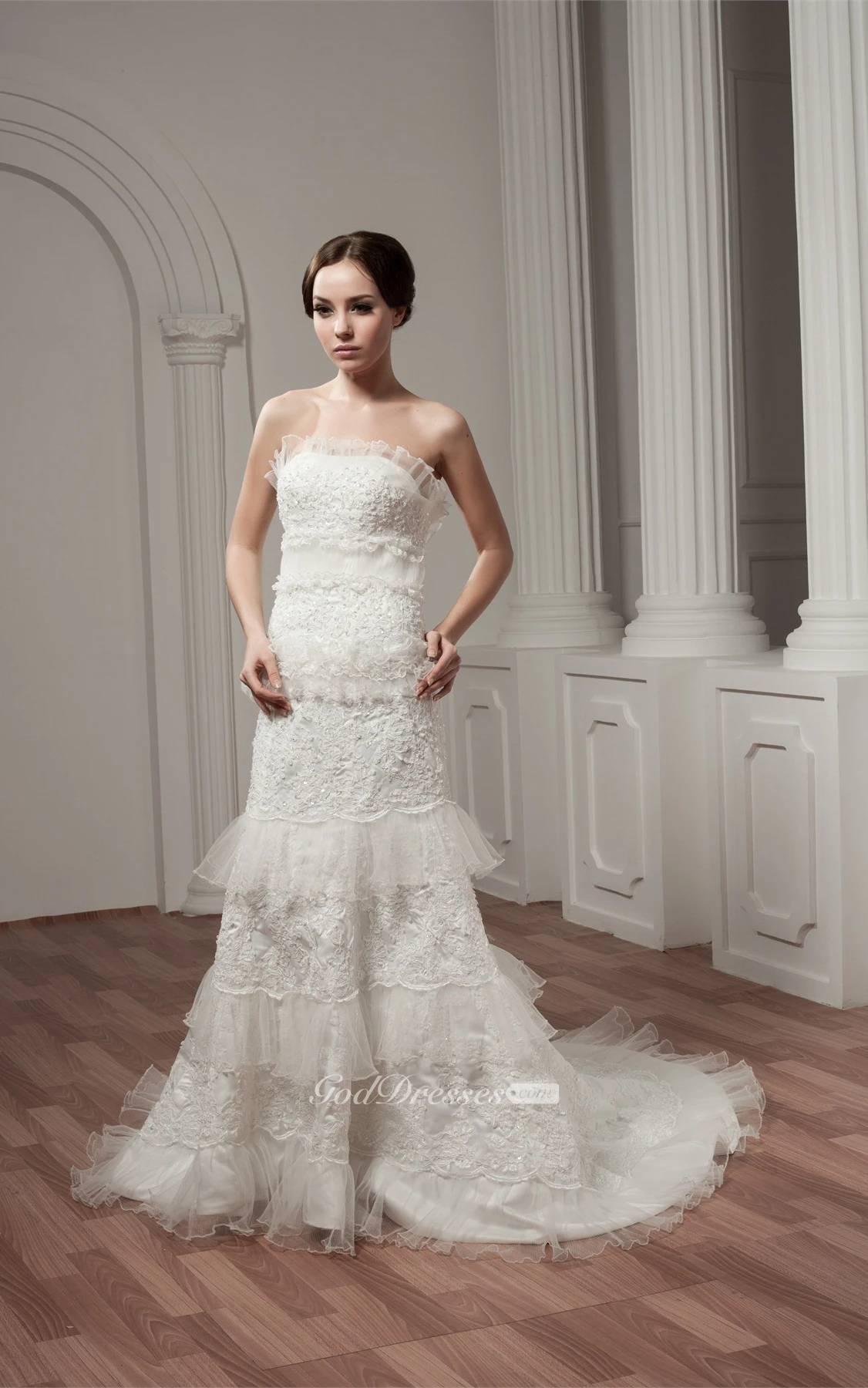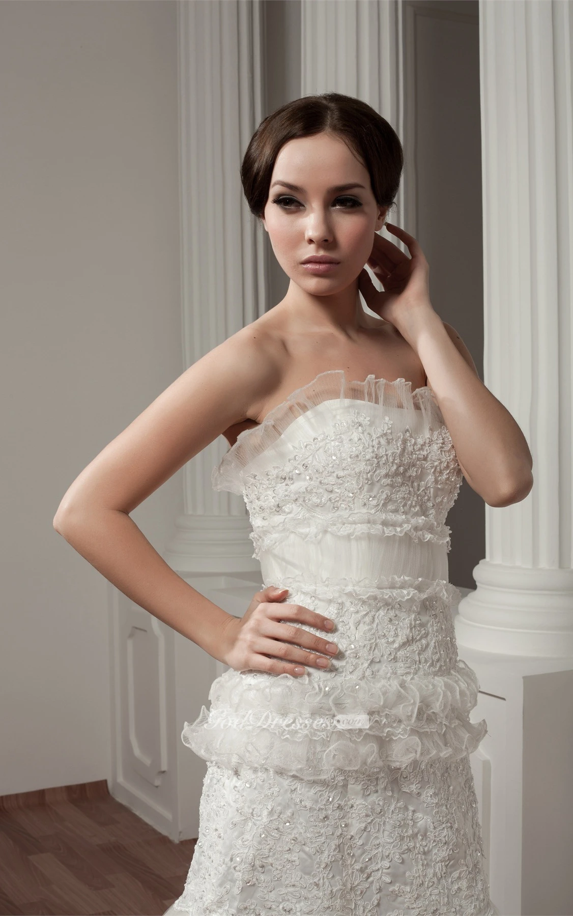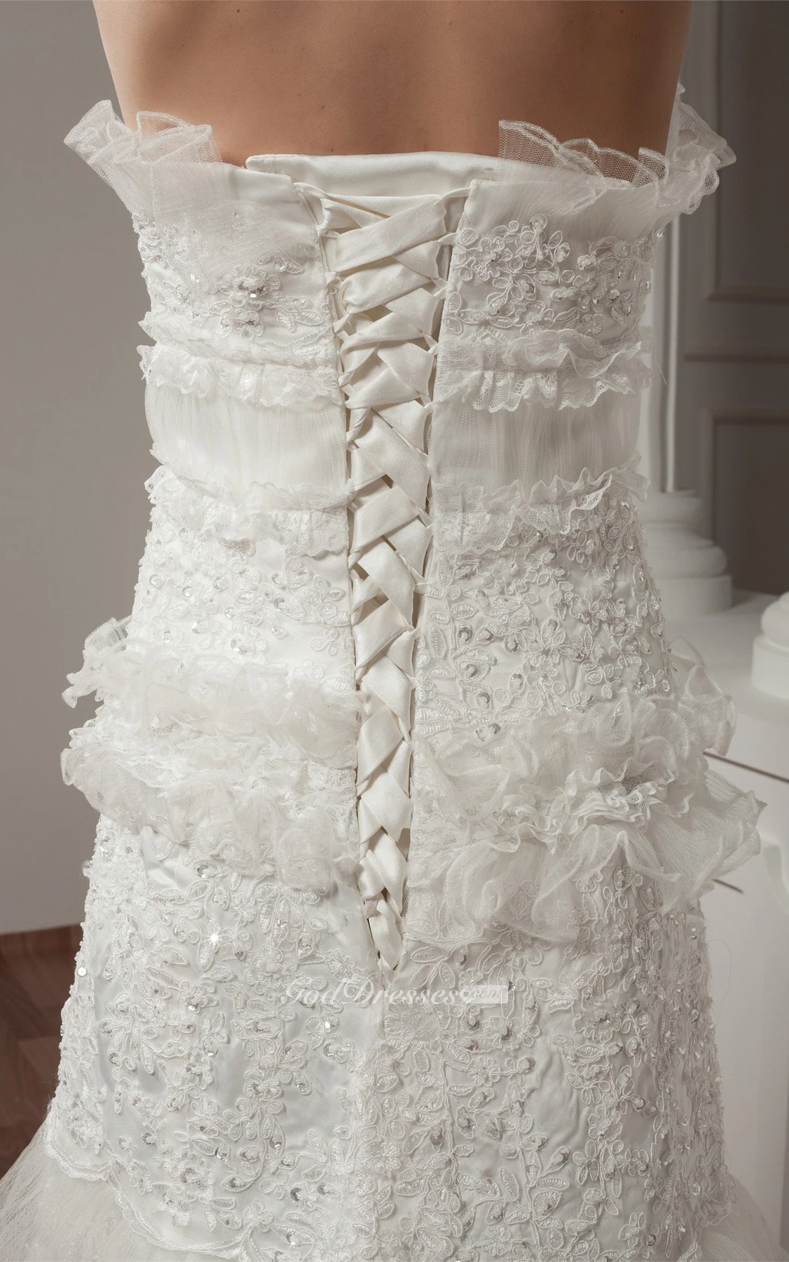 Strapless Ruffled A-Line Peplum and Gown With Lace