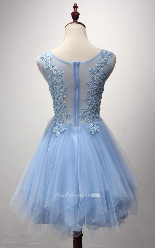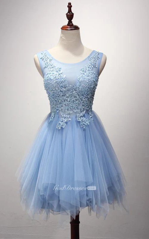 Strapless Scoop Neck Short A-Line Tulle Dress With Applique Bodice