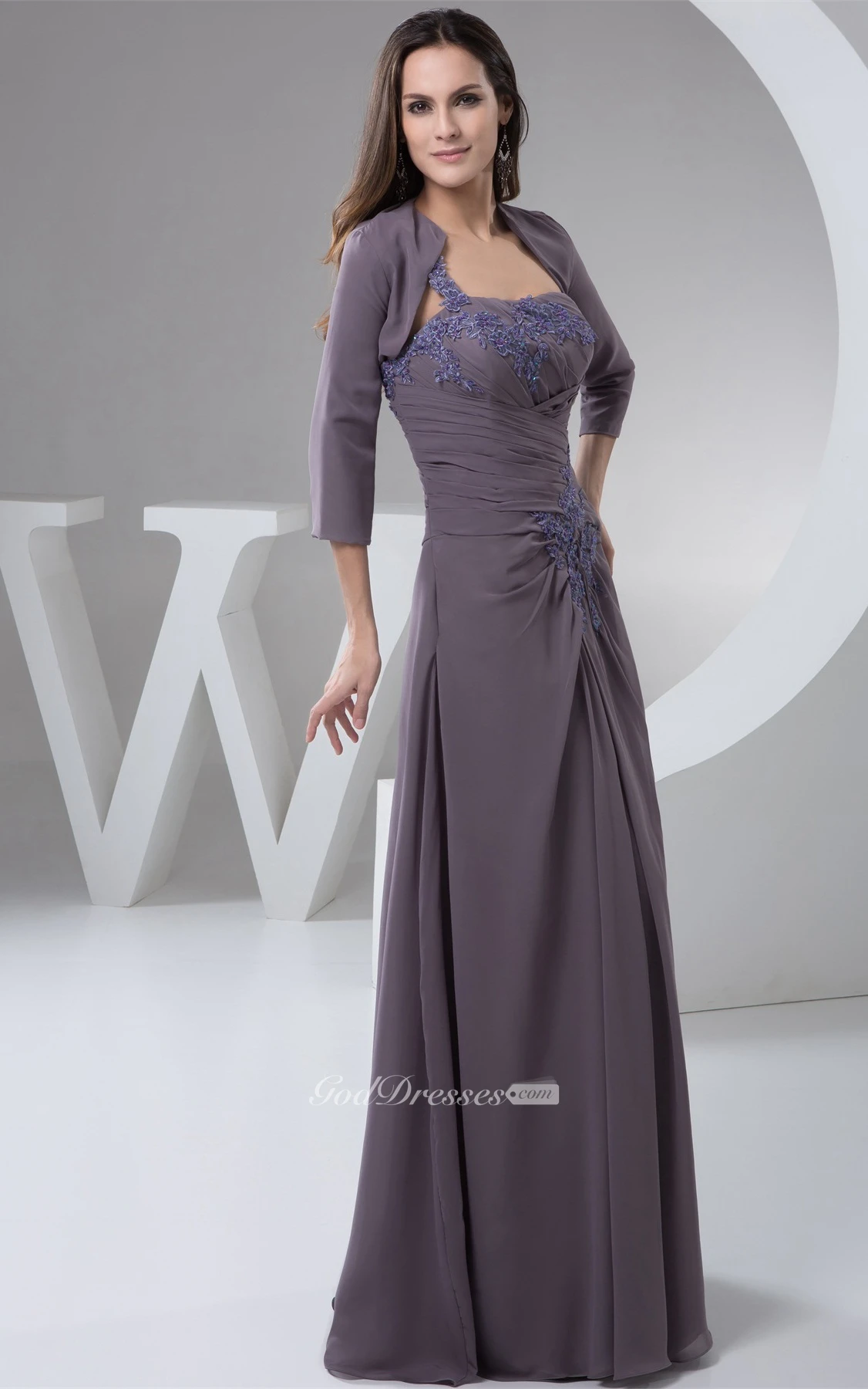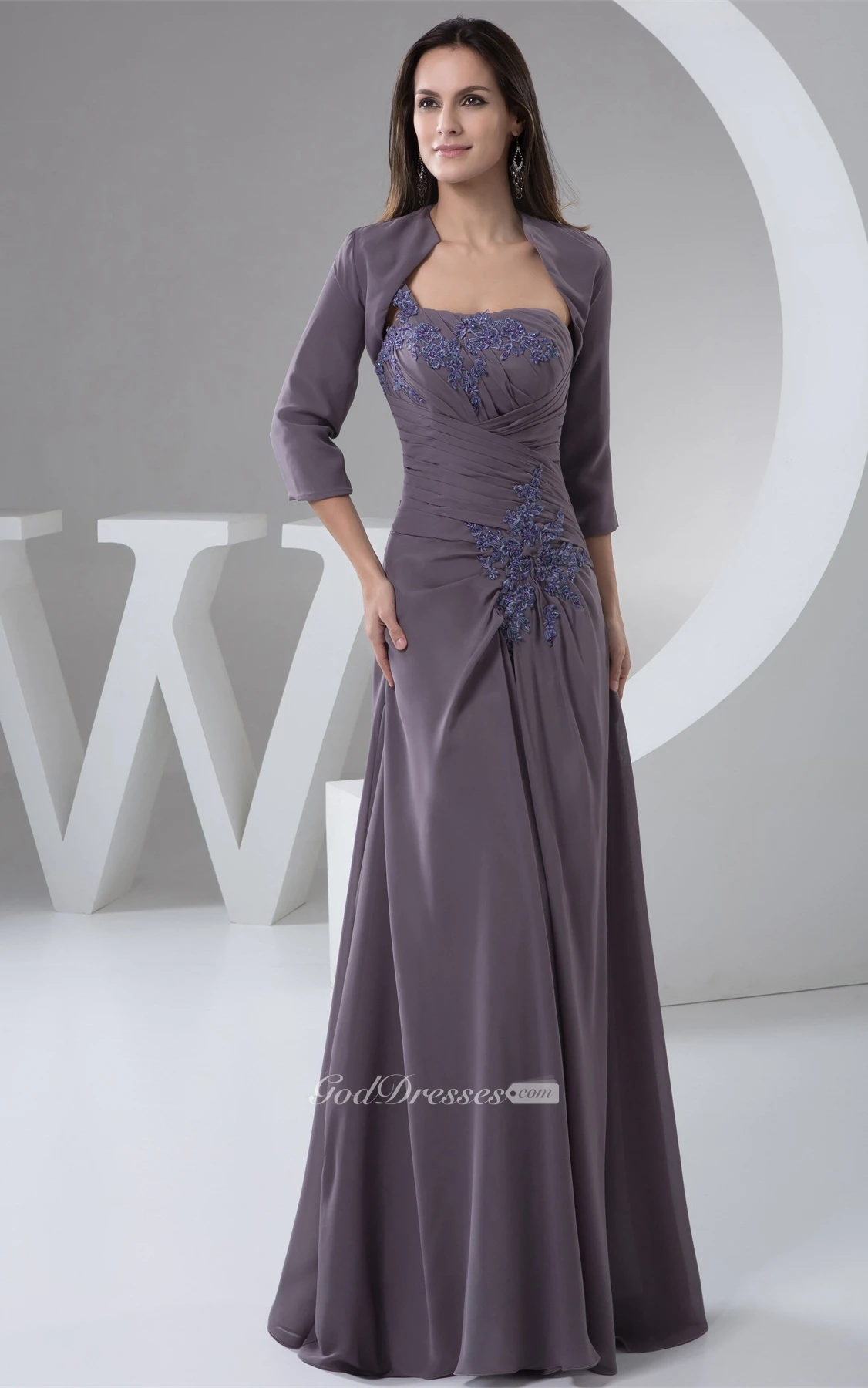 Strapless Sheath Chiffon Bolero and Dress With Lace
