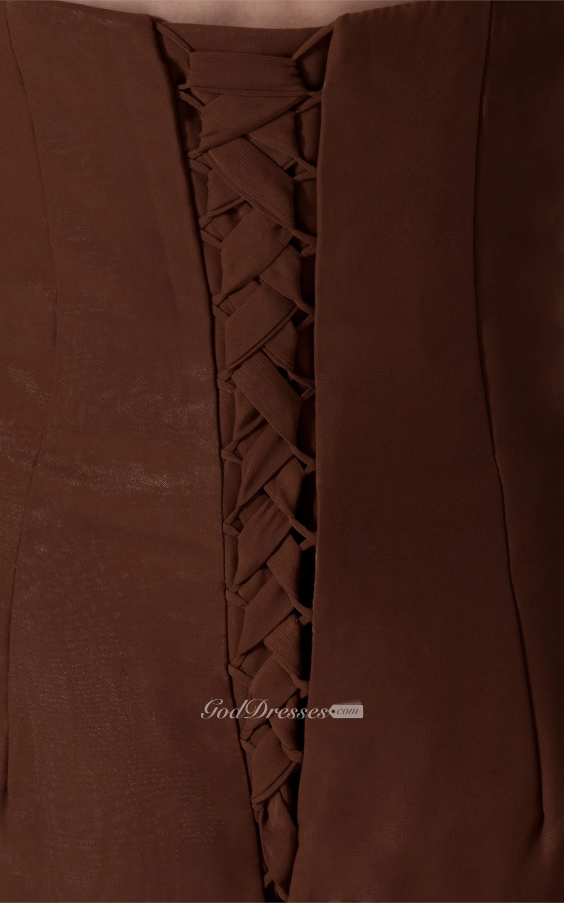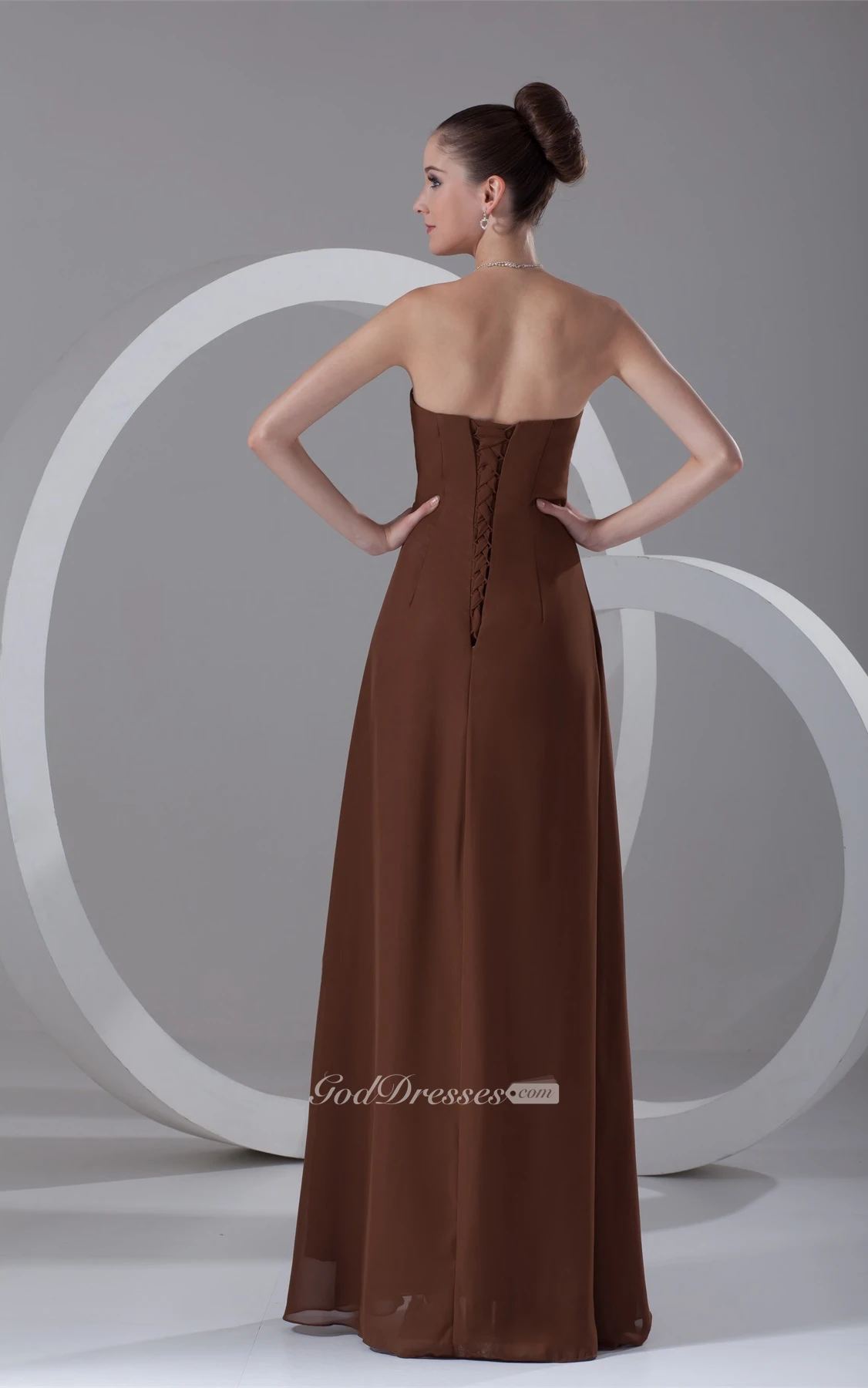 Strapless Sheath Chiffon Corset Back and Dress With Ruching