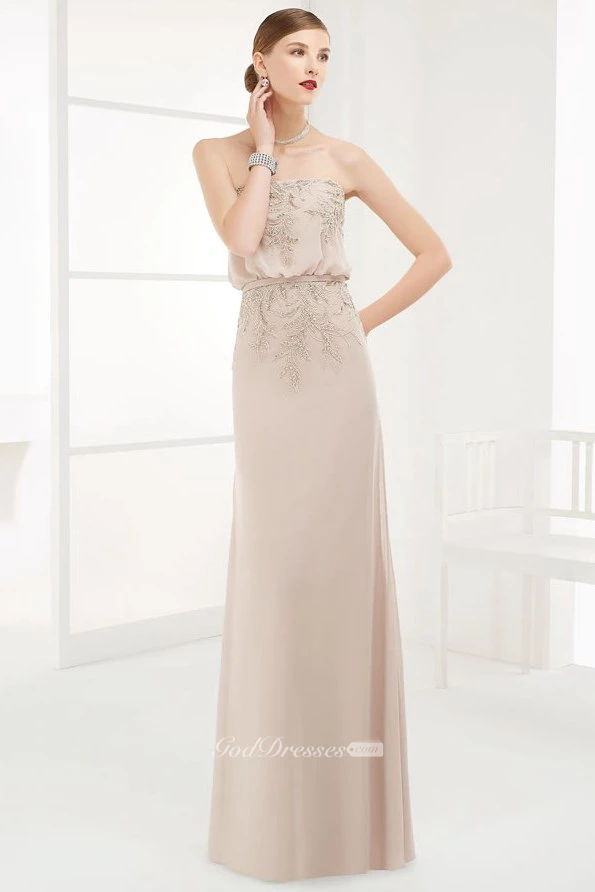 Strapless Sheath Long Prom Dress With Appliqued Top And Belt