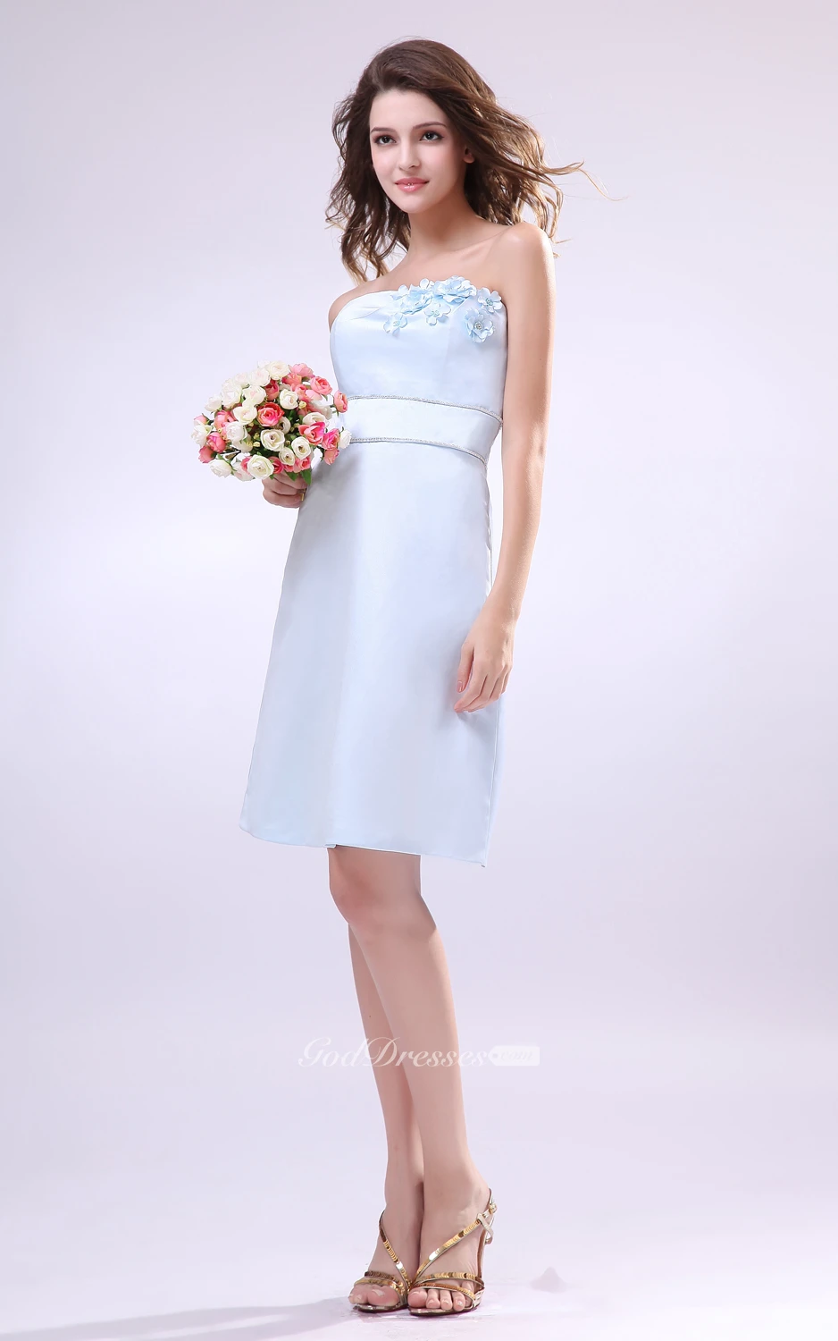 Strapless Short Dress With Belted Waist and Floral Embellishment