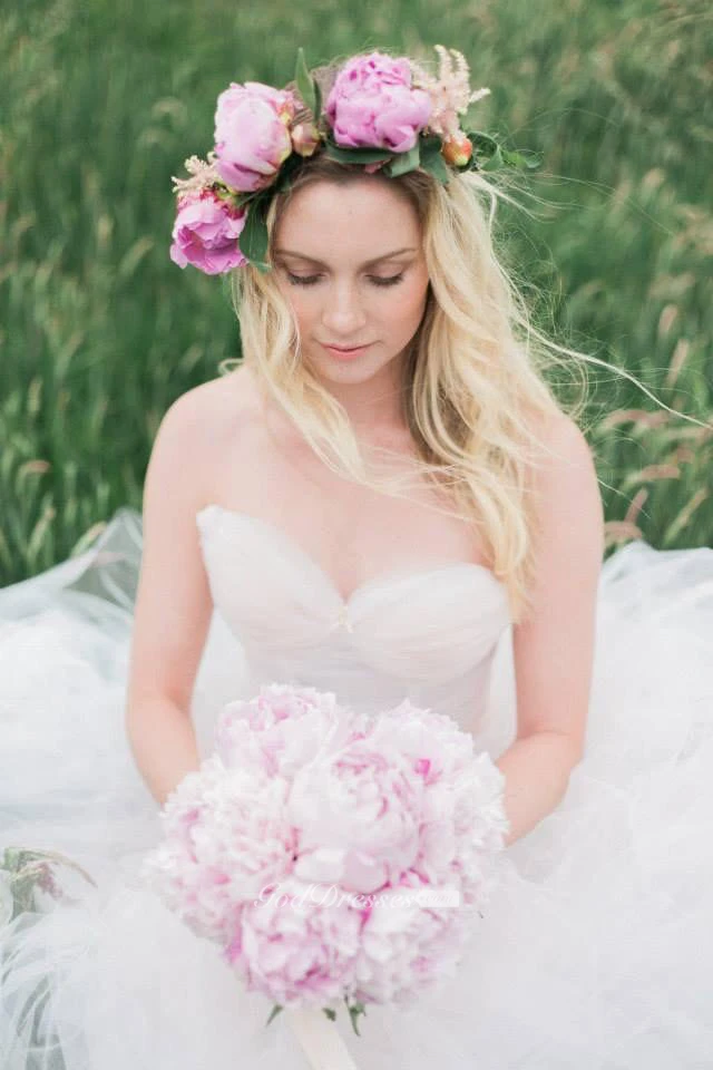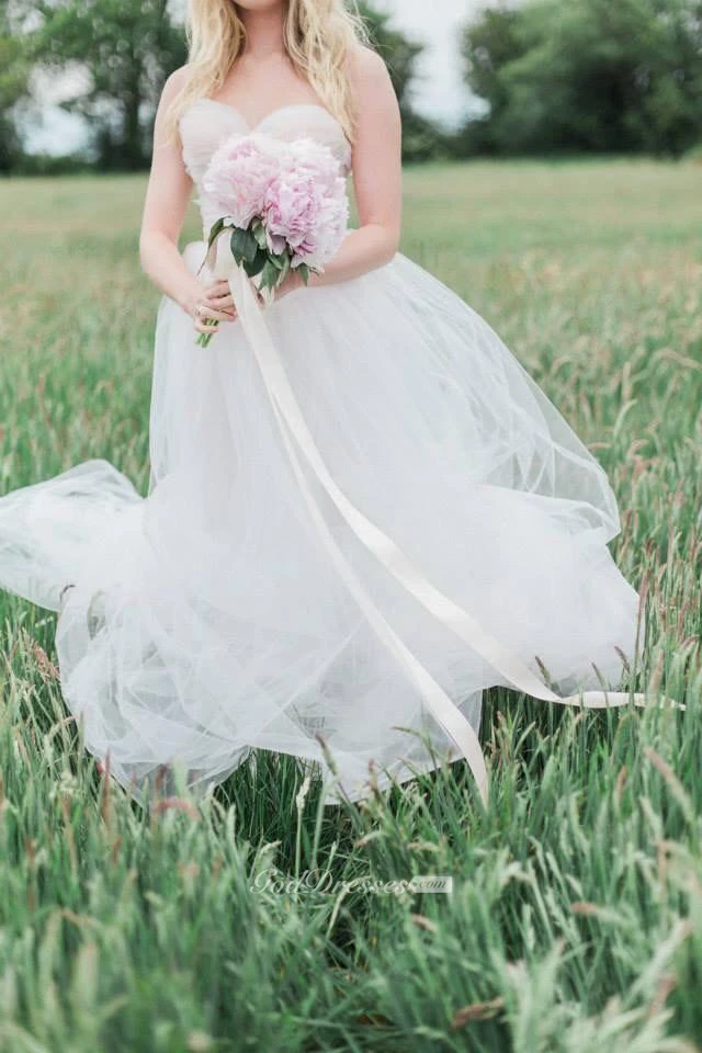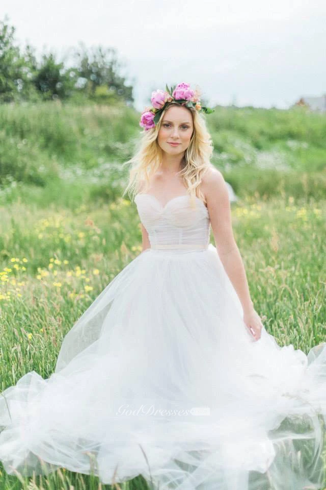 Strapless Sweetheart A-Line Tulle Wedding Gown With Waist Band