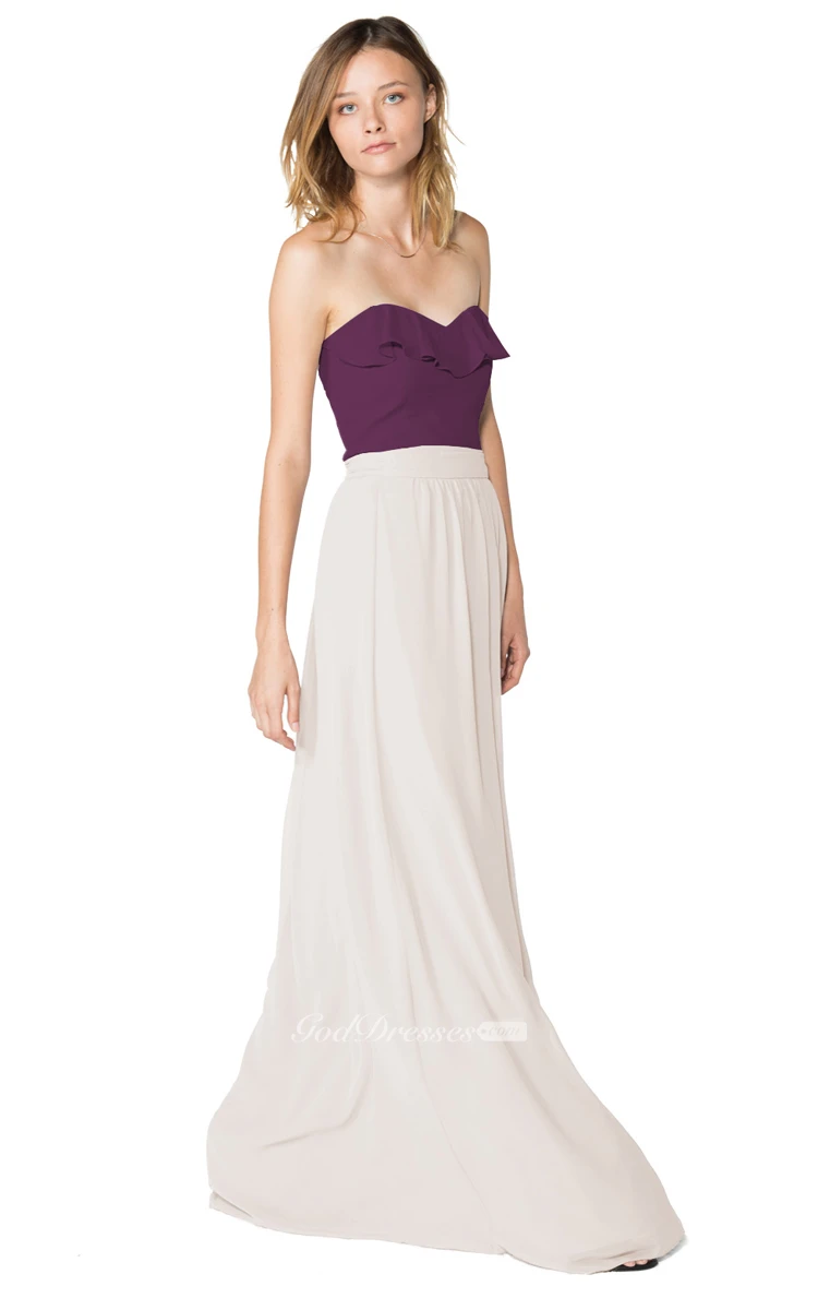 Strapless Sweetheart Chiffon Long Dress With Ruffles