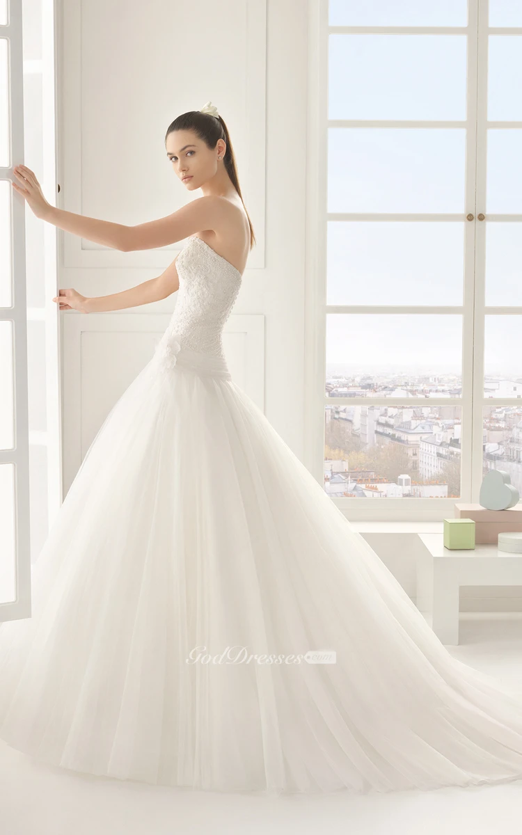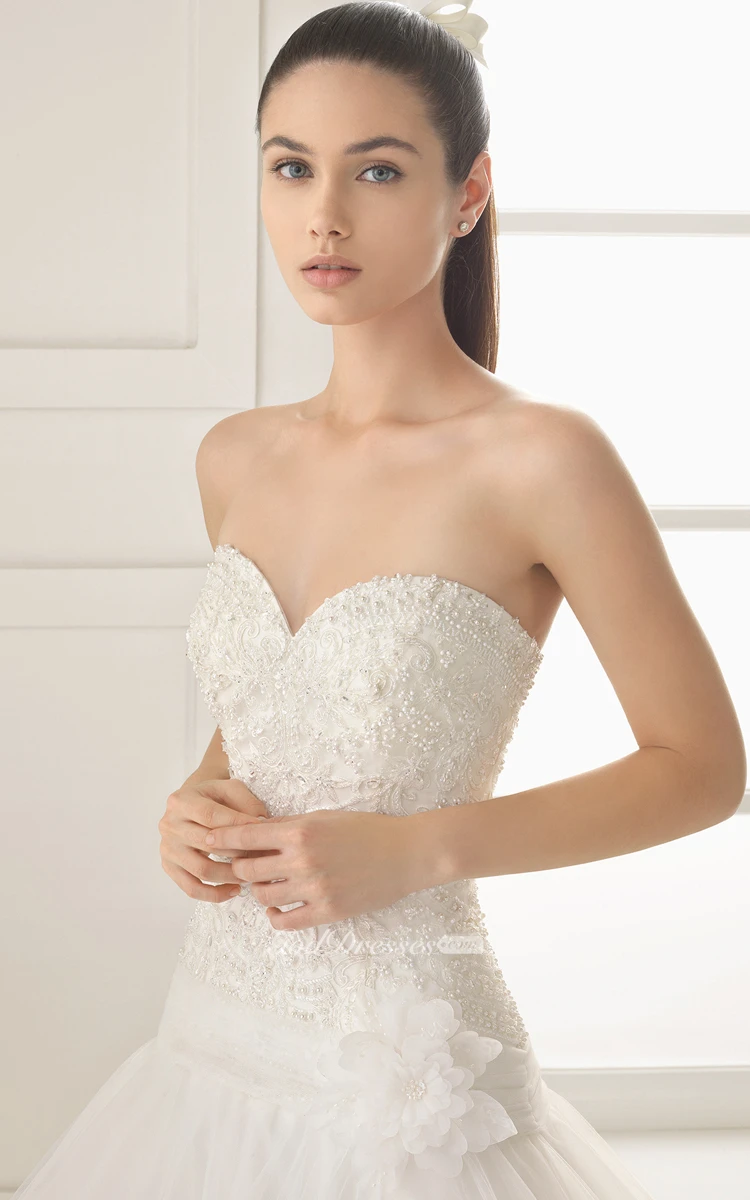 Strapless Sweetheart Gown With Beaded Bodice And Ruffles
