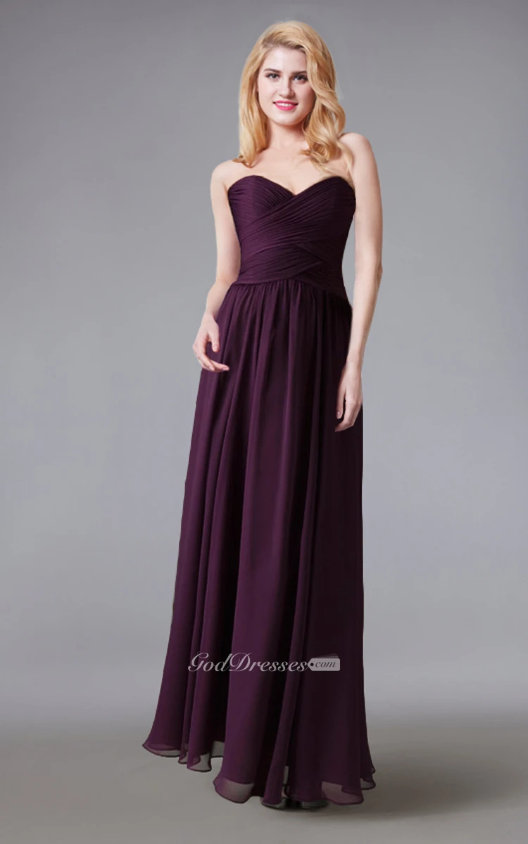 Strapless Sweetheart Long Chiffon Dress With Criss Cross Ruching