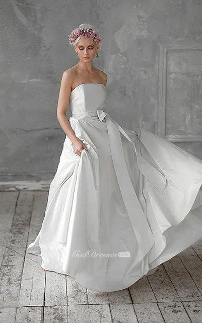 Strapless Taffeta A-Line Bridal Gown With Bow Sash