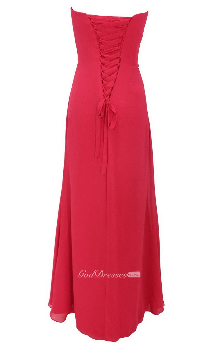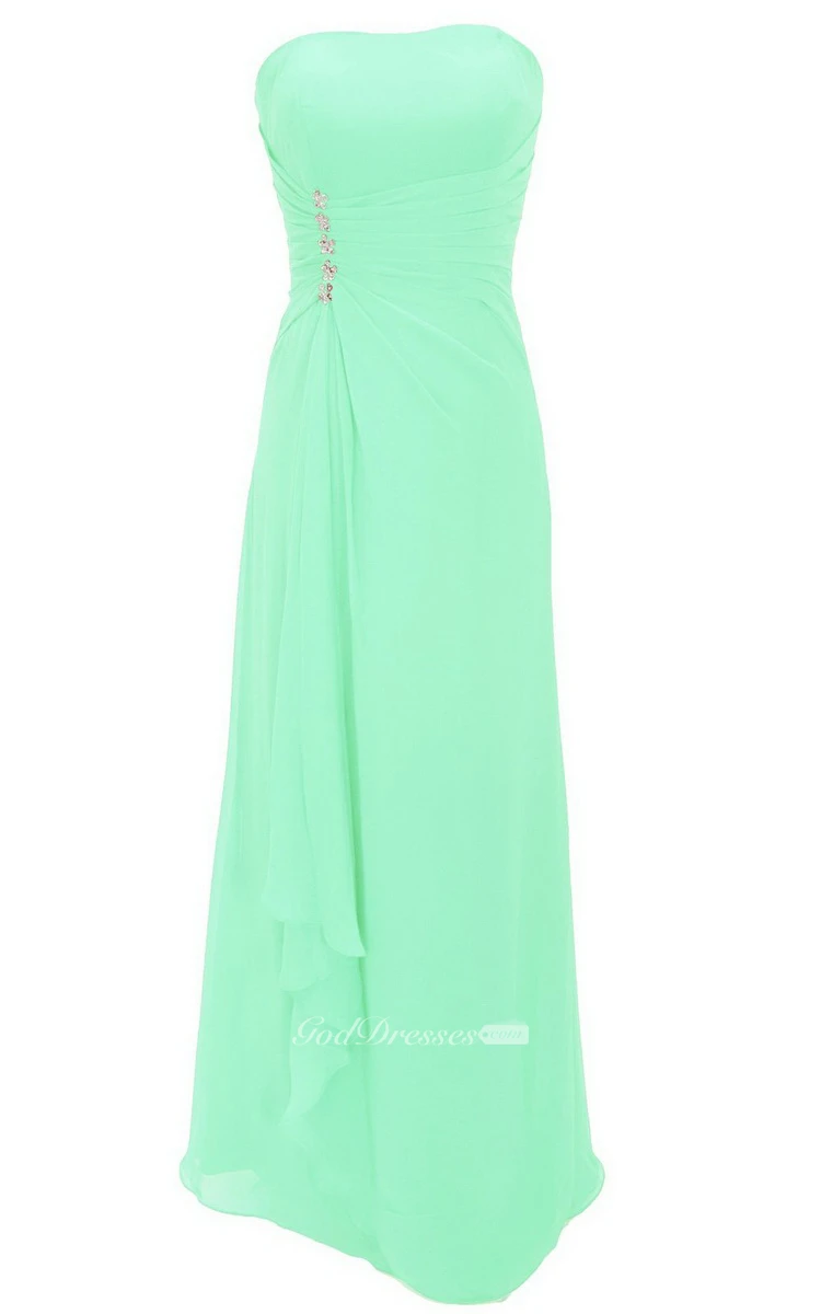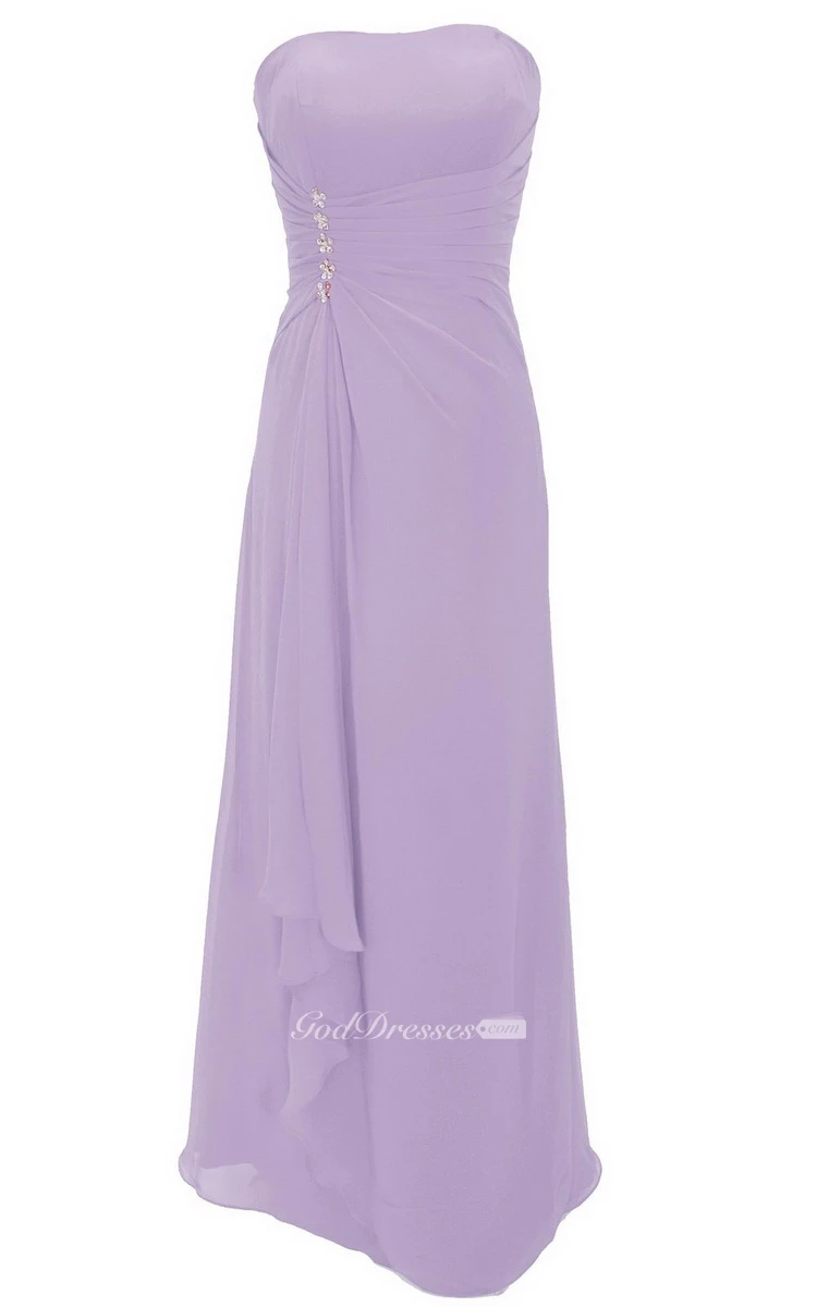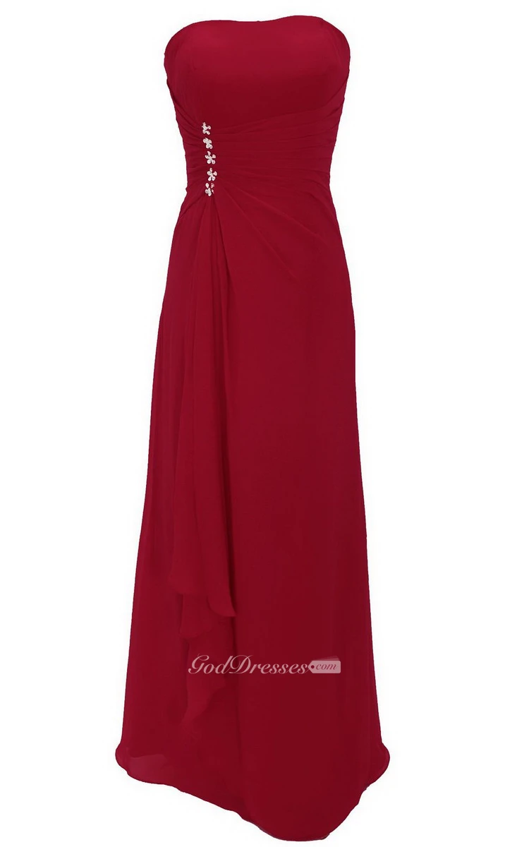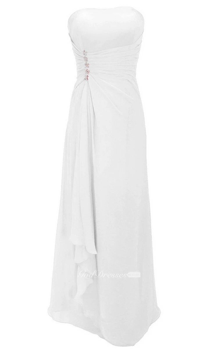 Strapless Tiered Chiffon Dress With Draping and Beading