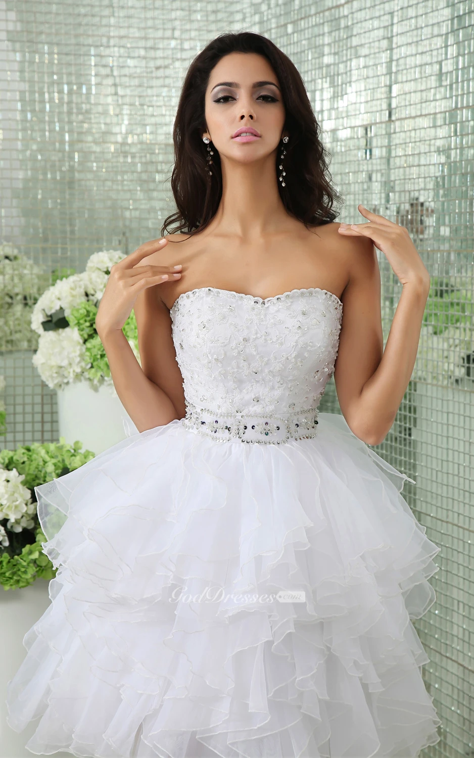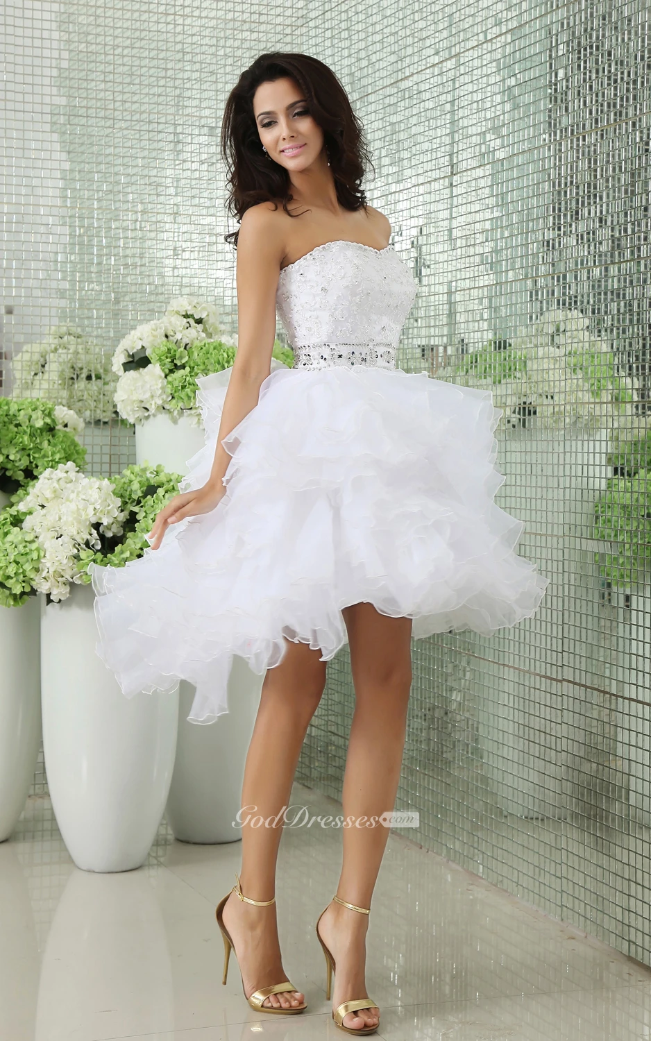 Strapless Tiers Short Dress With Ruffles and Beadings