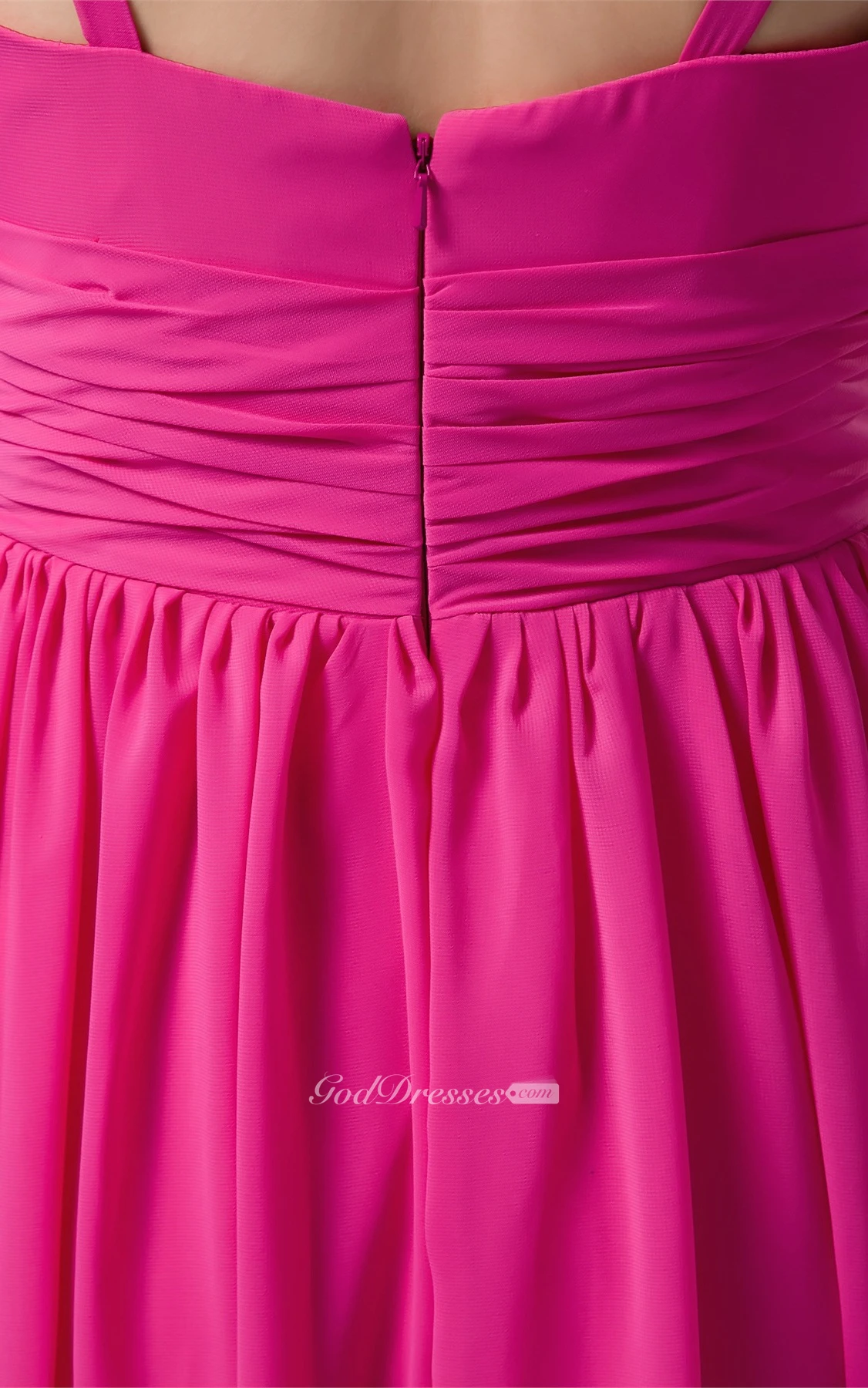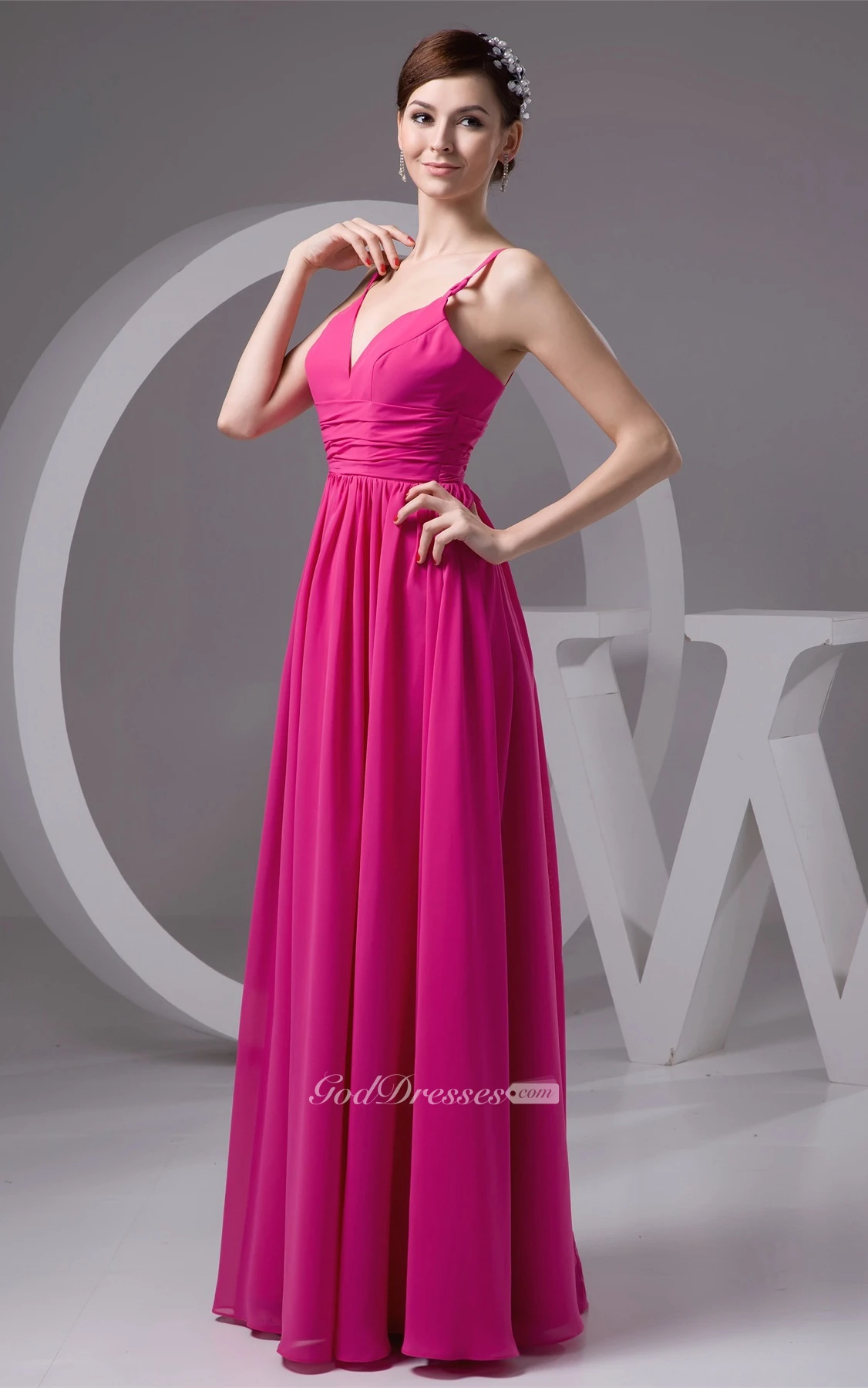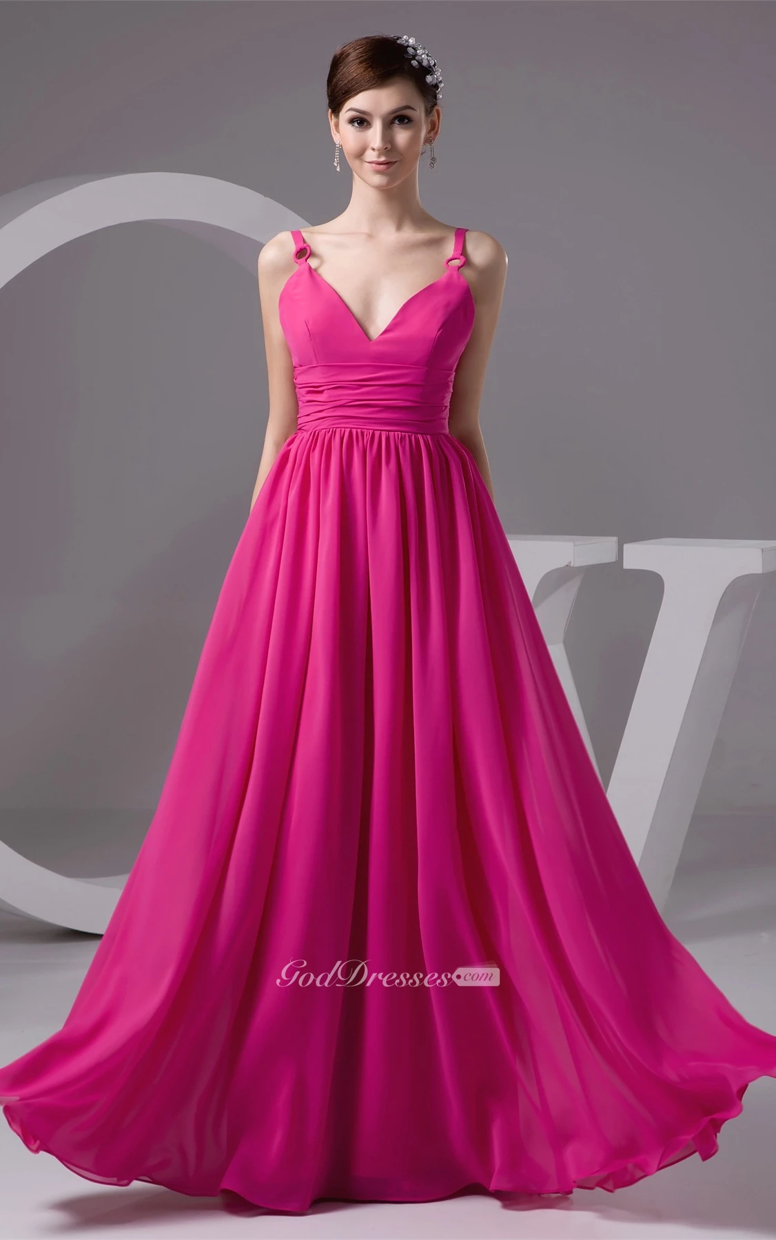Strapped Chiffon Floor-Length Plunged Gown With Pleats