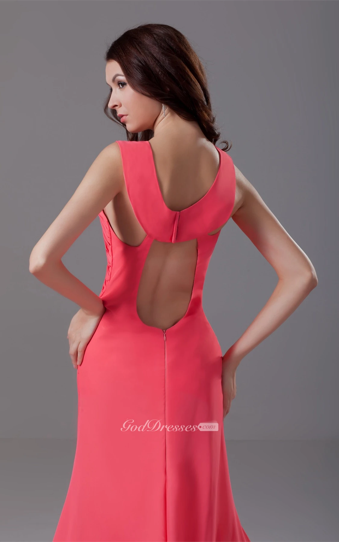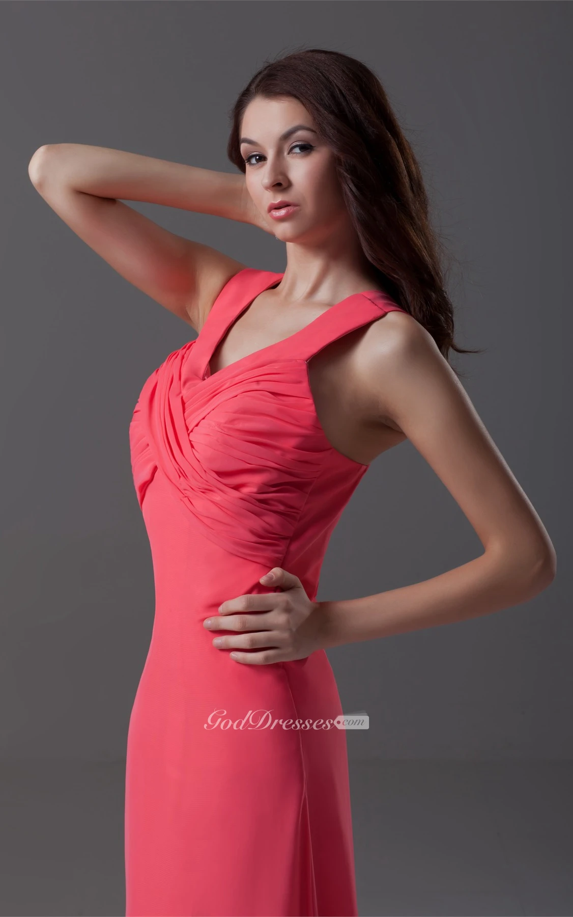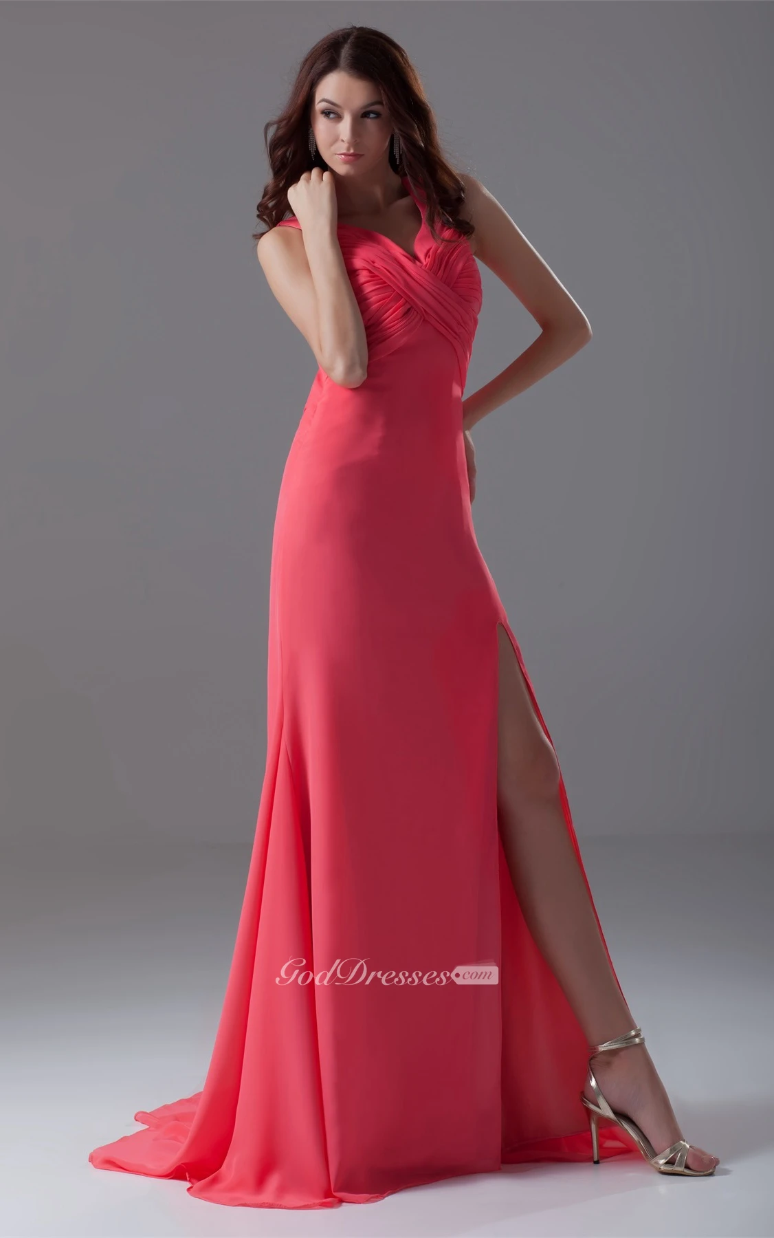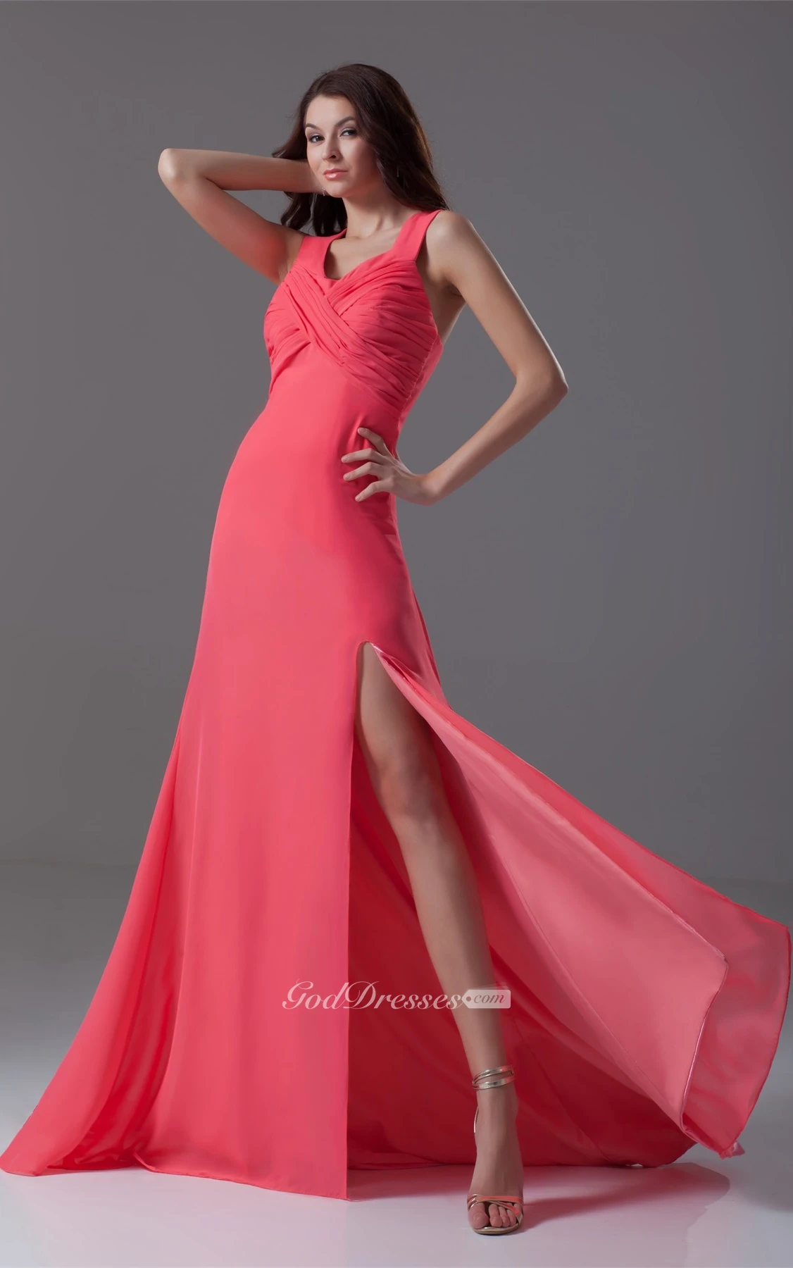 Strapped Chiffon Front-Split Dress With Criss-Cross Ruching