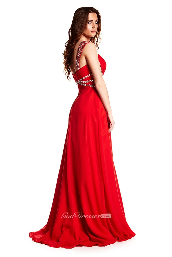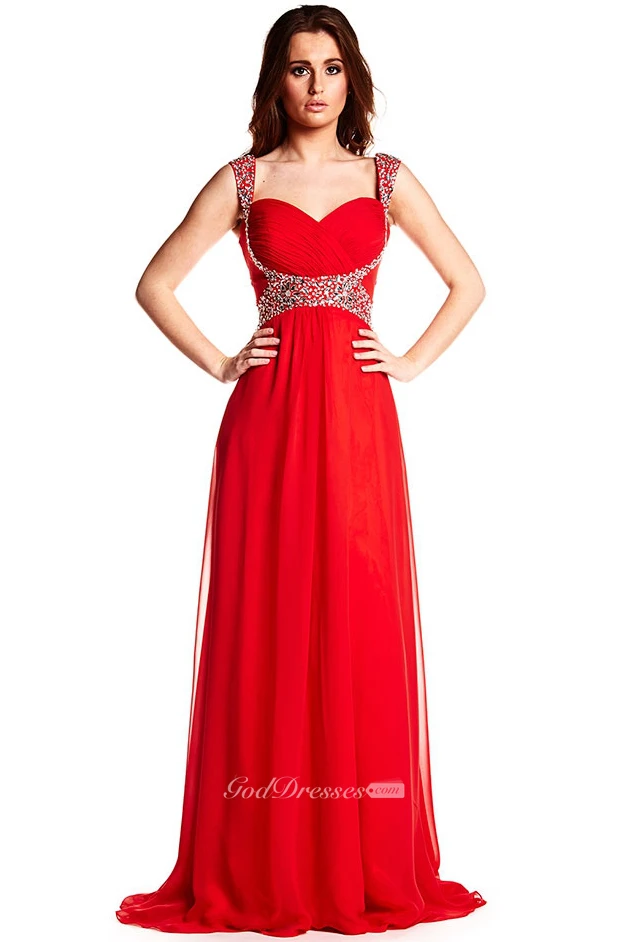 Strapped Criss-Cross Sleeveless Chiffon Prom Dress