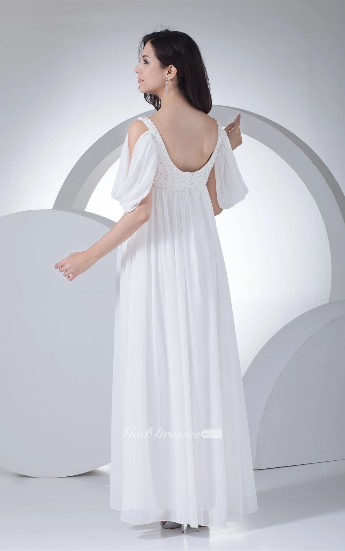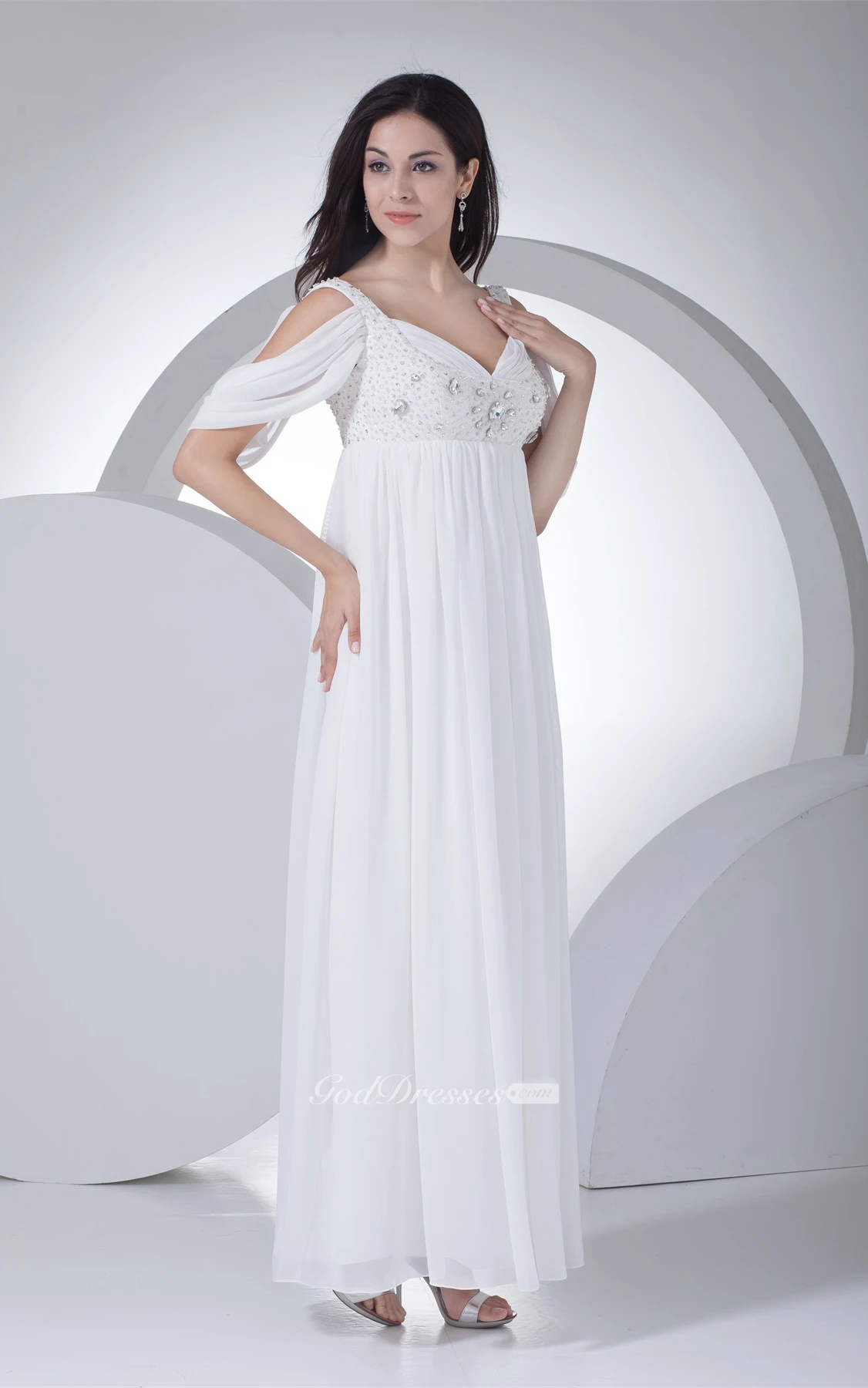 Strapped Empire Plunged Pleats and Dress With Rhinestone