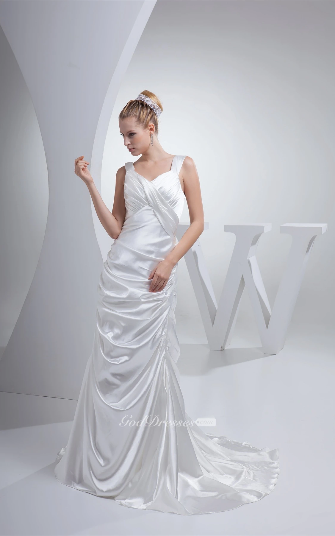 Strapped Pick-Up Sheath Criss-Cross Gown With Sweep Train