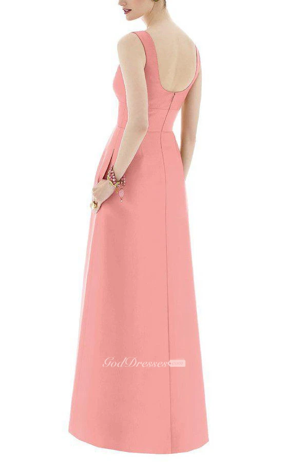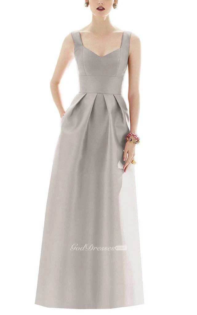 Strapped Satin Pleated Long Dress