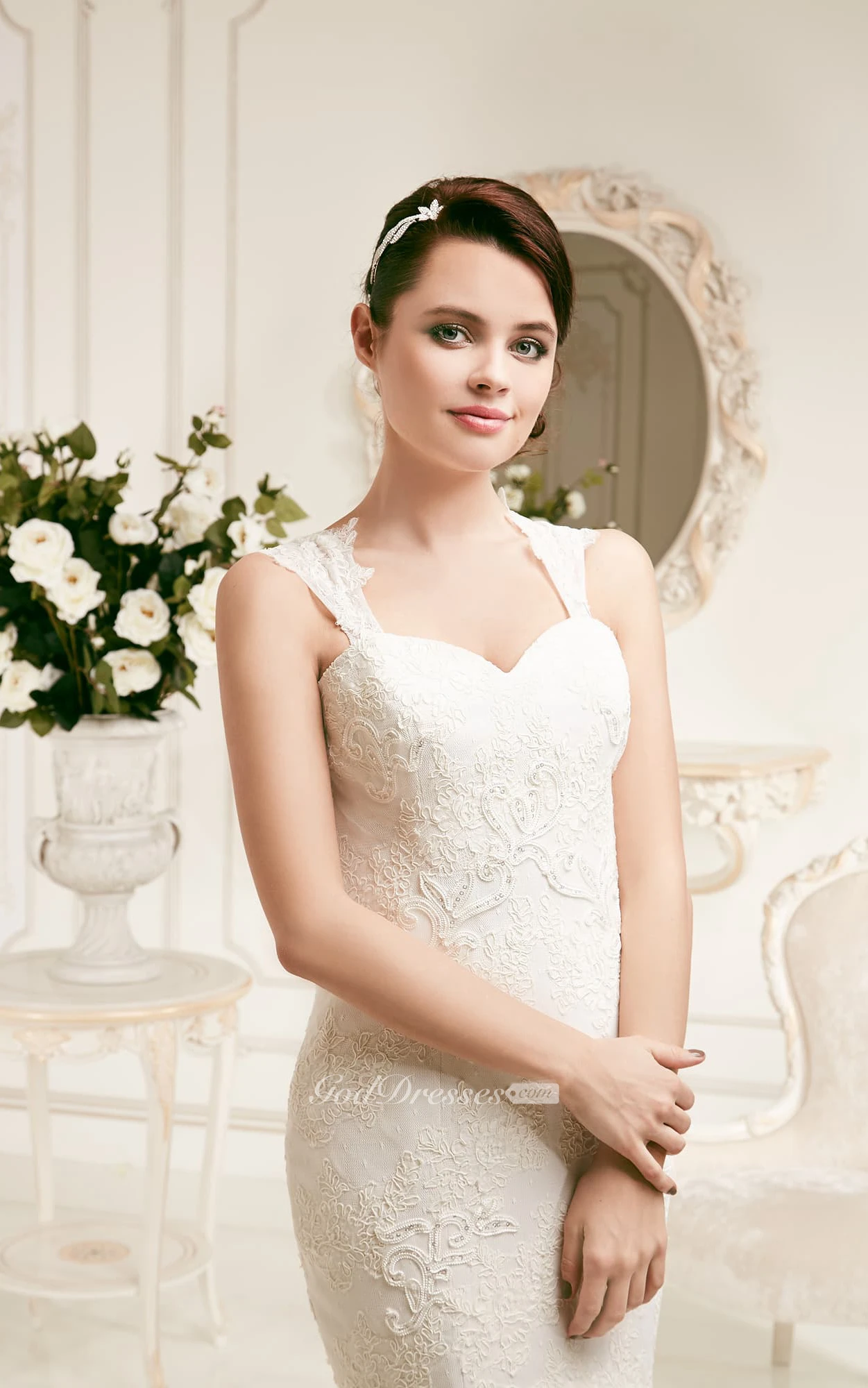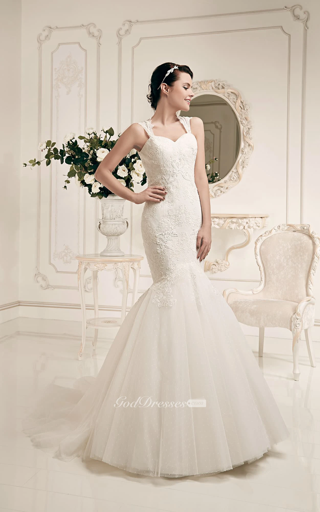 Strapped Sweetheart Illusion Back Appliques Mermaid Dress