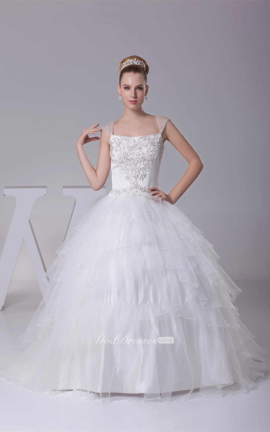 Strapped Tulle Illusion and Ball-Gown With Embroideries