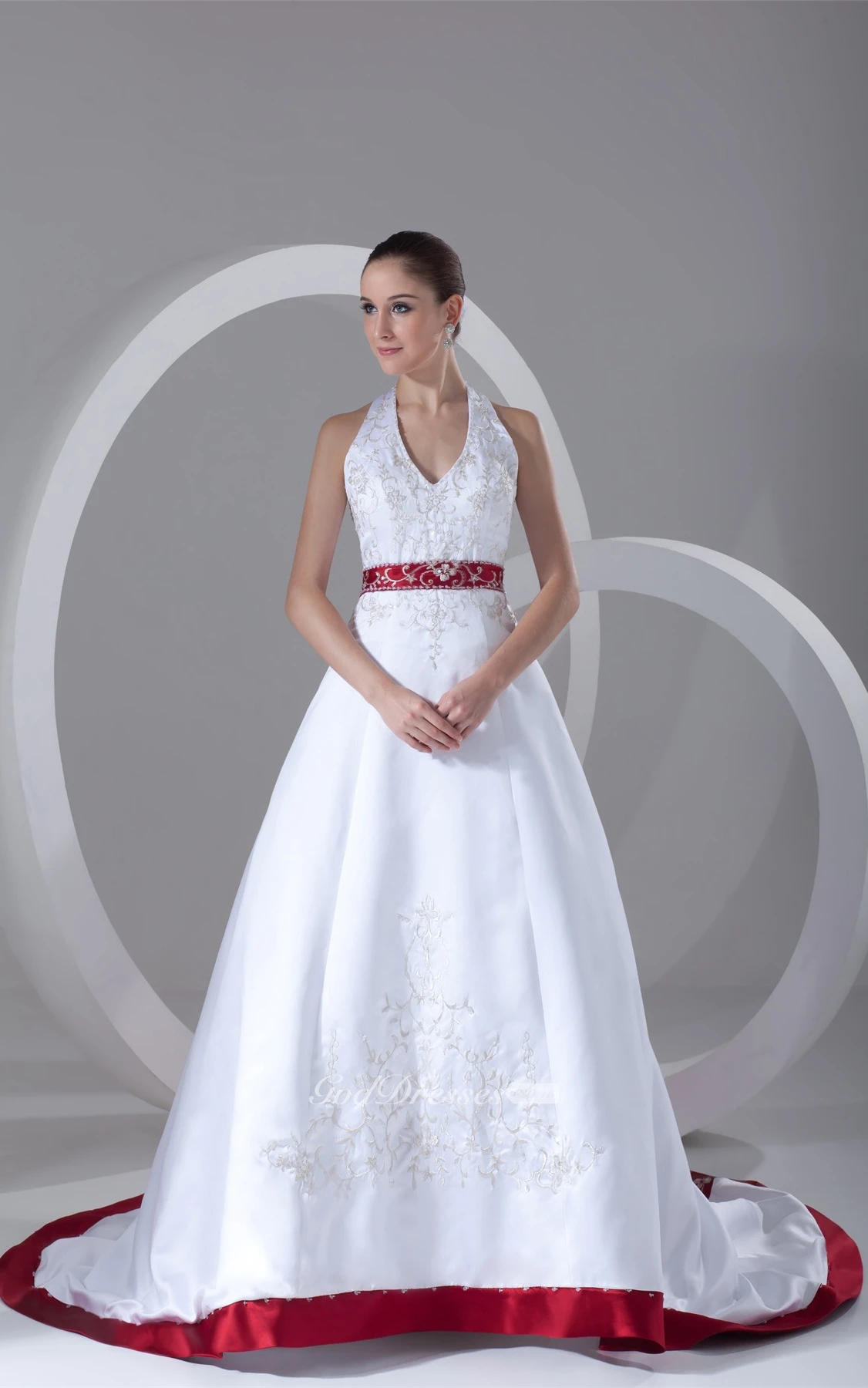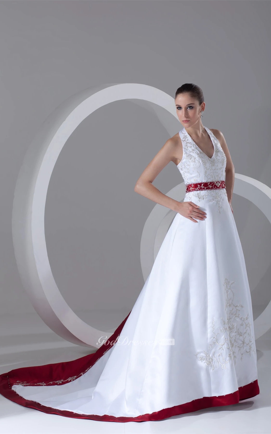 Stunning Halter Sleeveless a Line Satin Wedding Dresses