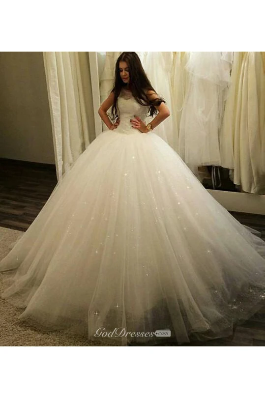 Stunning Sleeveless Tulle Princess Wedding Dress Sequins Ball Gown