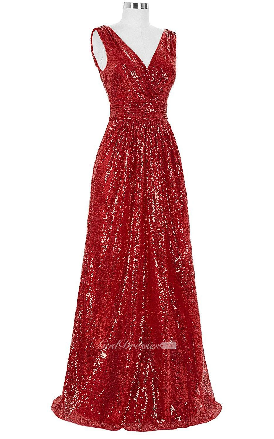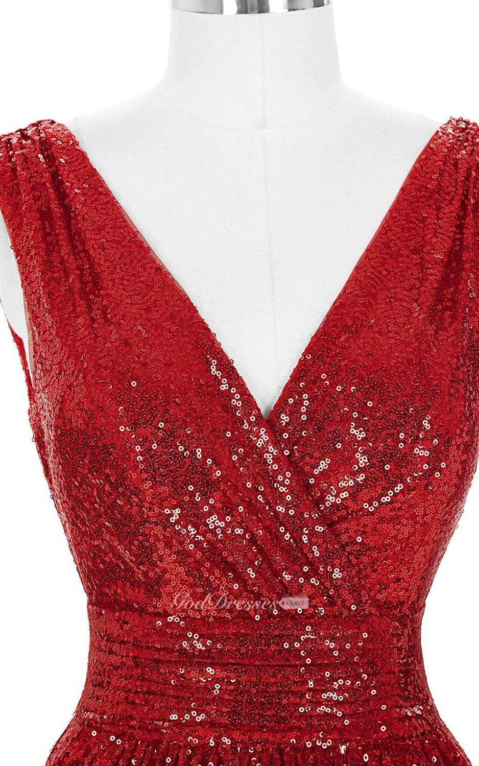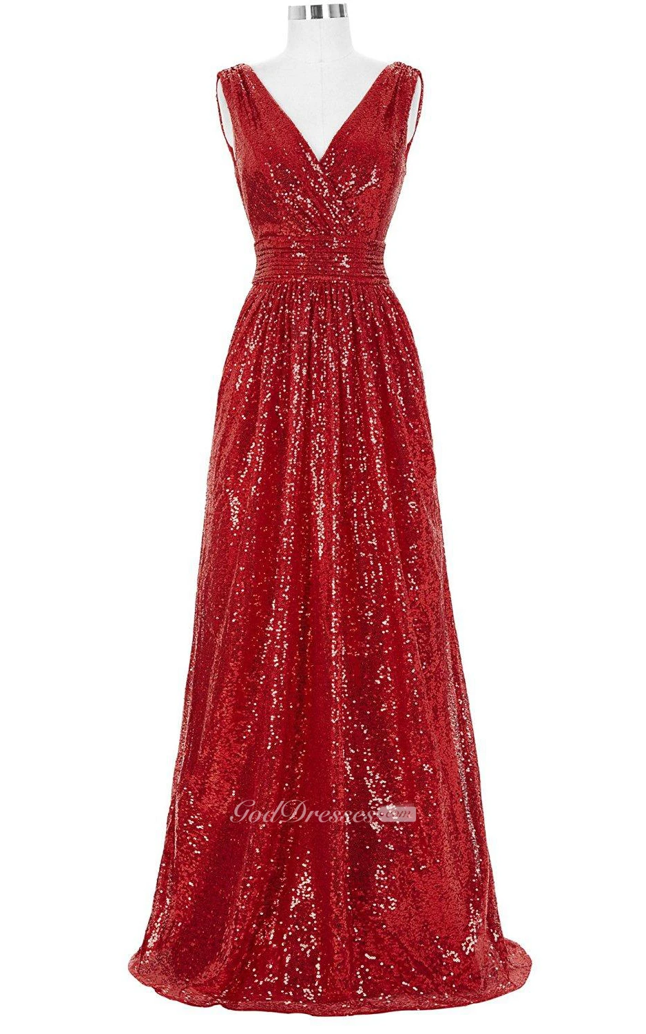 Stunning Sleeveless V-neck Sequined Floor-length Dress