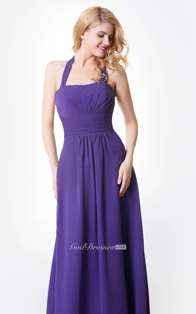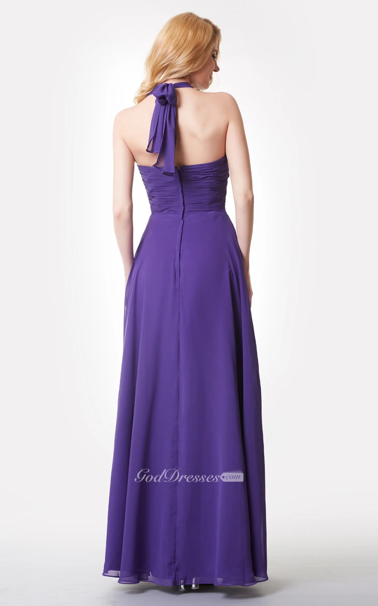 Stylish Backless Ruched A-line Long Chiffon Dress
